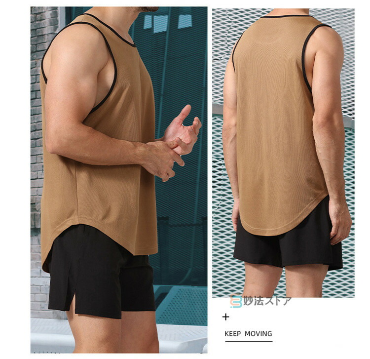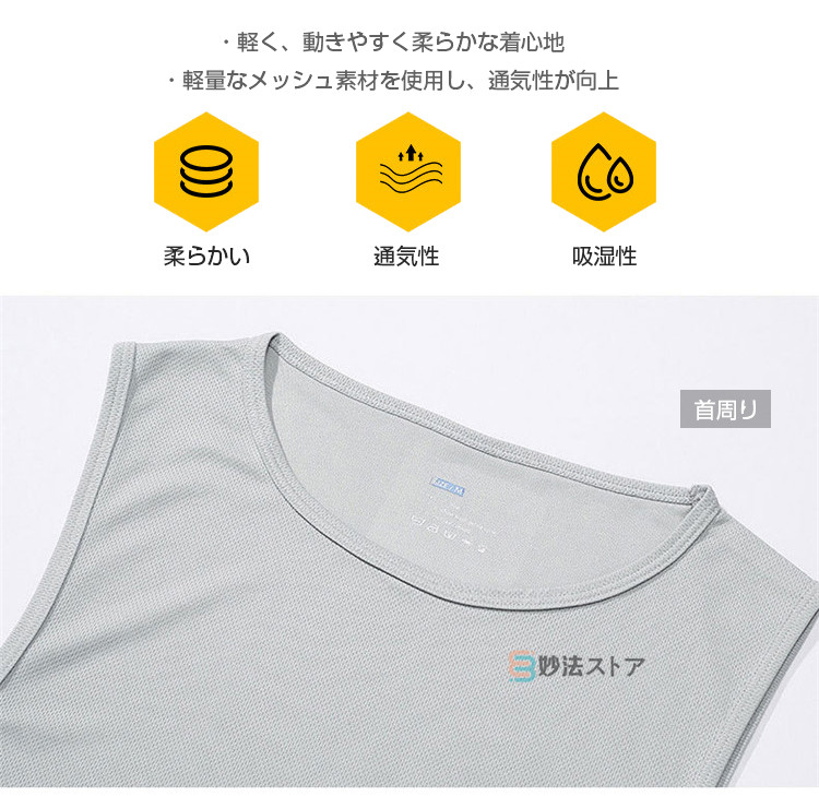 タンクトップ メンズ トレーニングウェア ノースリーブ 筋トレ ジム フィットネス スポーツ 吸汗 速乾 メッシュ タンク トップス 袖なし クルーネック 無地 カジュアル バスケ 運動着 ジムウェア 肌着 部屋着 ランニング 夏物 夏服 通気性に優れた素材、柔らかくて快適な着心地
