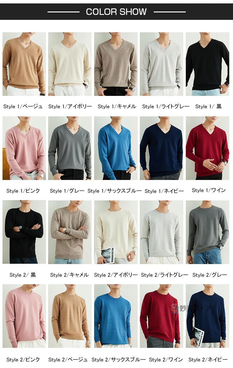 長袖 ニット クルーネック Vネック トップス ニット セーター 早い者勝ち M L XL 2XL 3XL Style1ベージュ Style1アイボリー Style1キャメル Style1ライトグレー Style1黒 Style1ピンク Style1グレー Style1サックスブルー Style1ネイビー Style1ワイン Style2黒 Style2キャメル Style2アイボリー Style2ライトグレー Style2グレー Style2ピンク Style2ベージュ Style2サックスブルー Style2ワイン Style2ネイビー