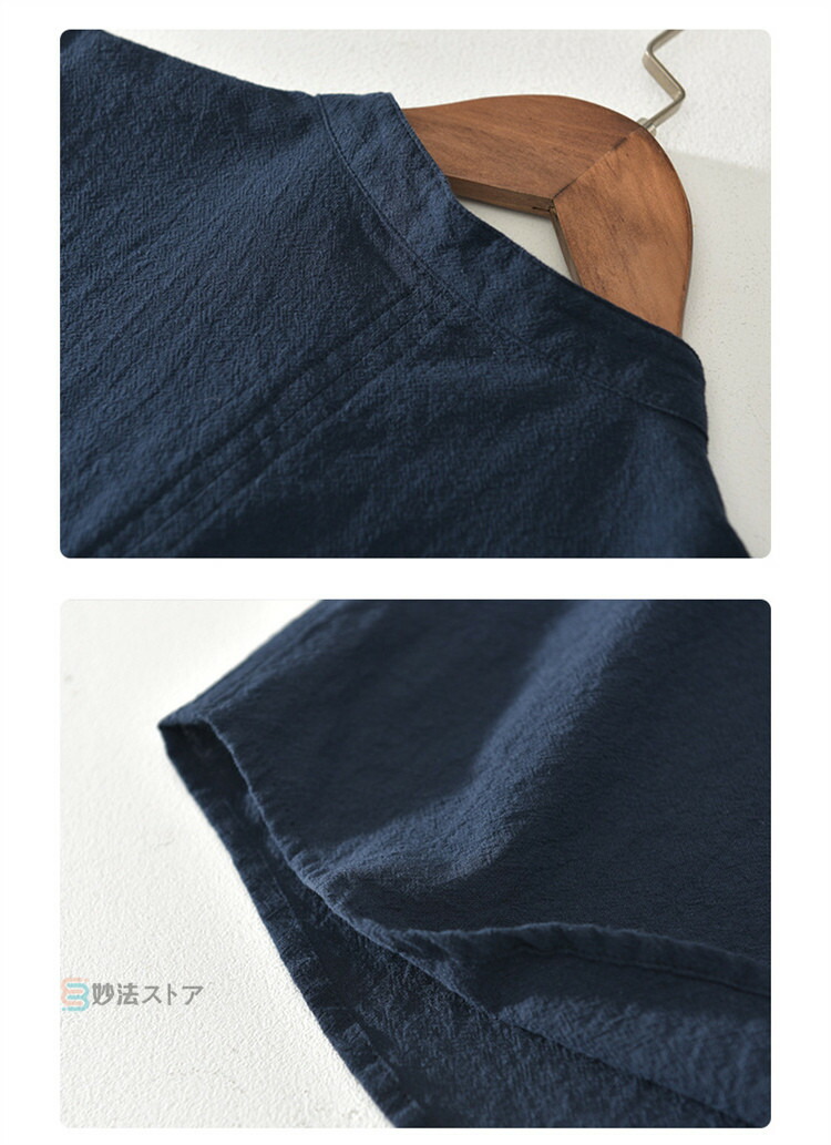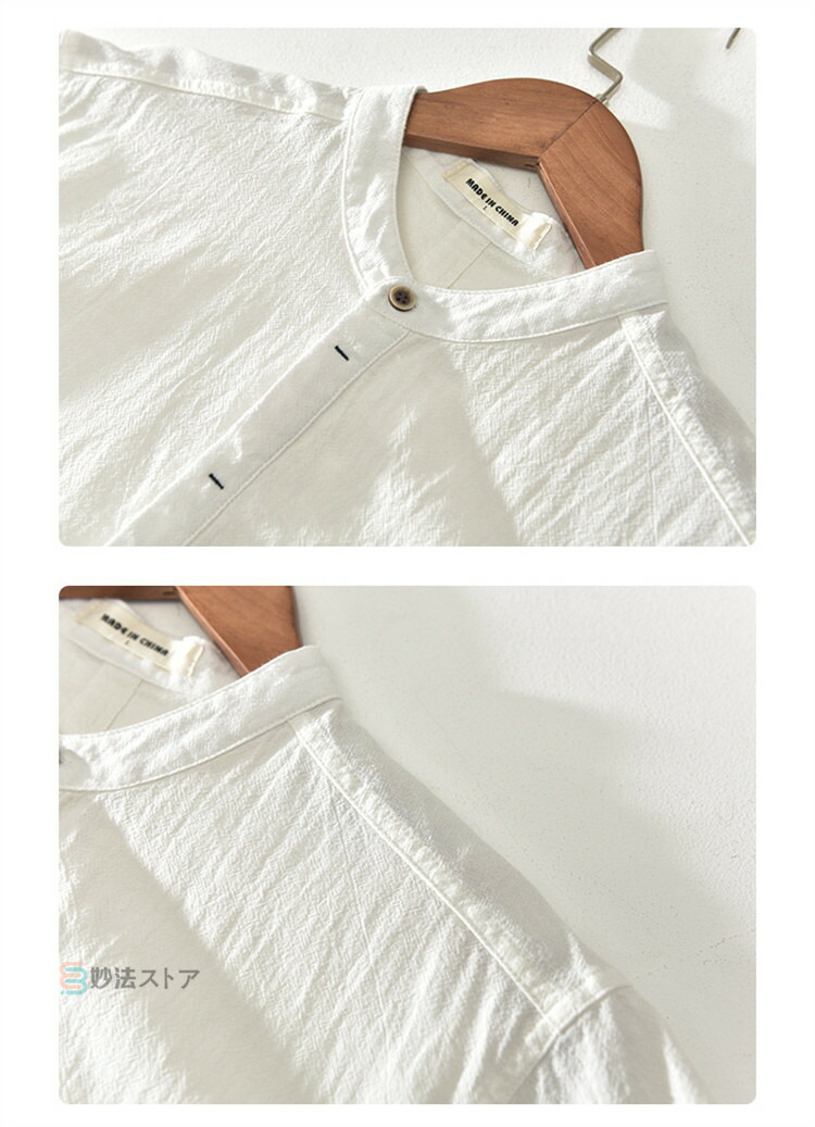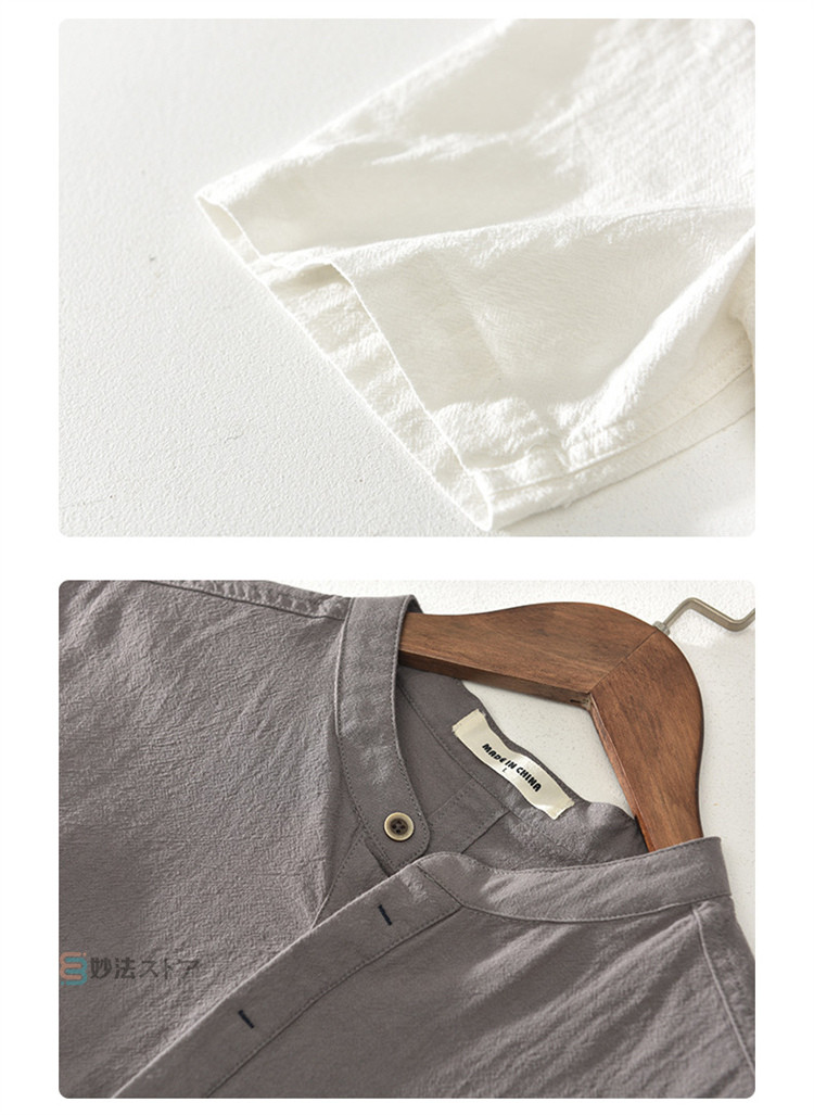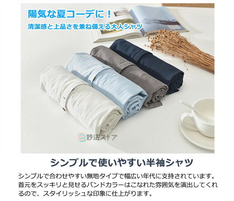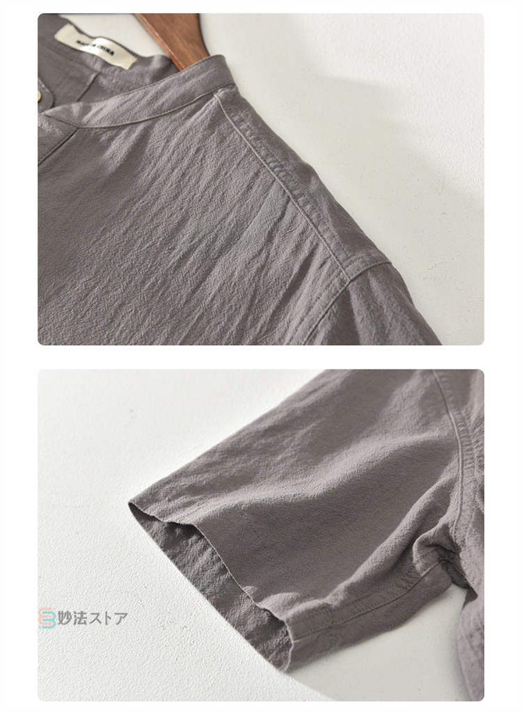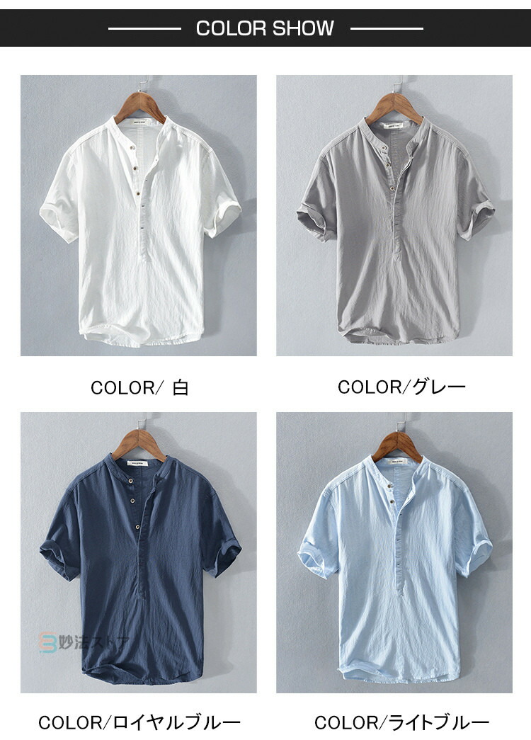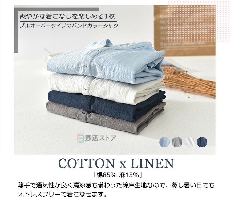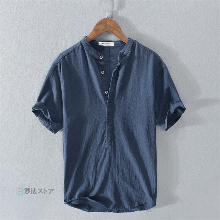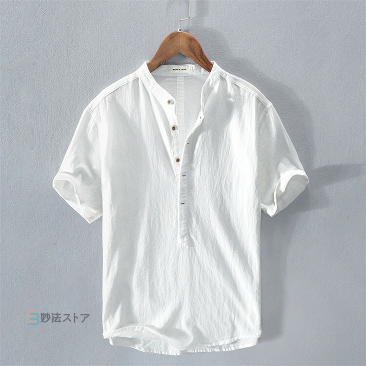 綿麻 シャツ リネンシャツ メンズ バンドカラー プルオーバー 半袖シャツ カジュアルシャツ ボタンシャツ スキッパーシャツ コットンリネン 薄手 爽やか シ ナチュラル