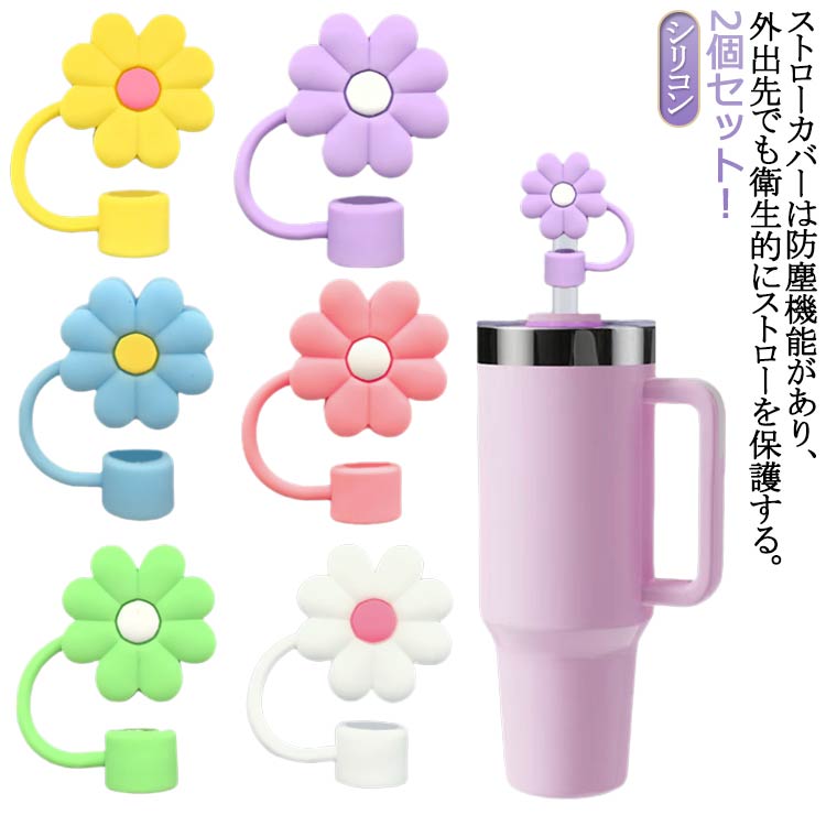 ストローカバー ストローカバーキャップ かわいい 花柄 ストローキャップ 2点セット防塵 キャップ かわいいストローカバー シリコンストローキャップ スタンレーカップストローアクセ スタンレーカップ用