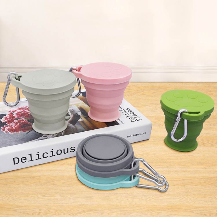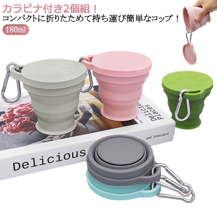カラビナ付き2個組!コンパクトに折りたためて持ち運び簡単なコップ!