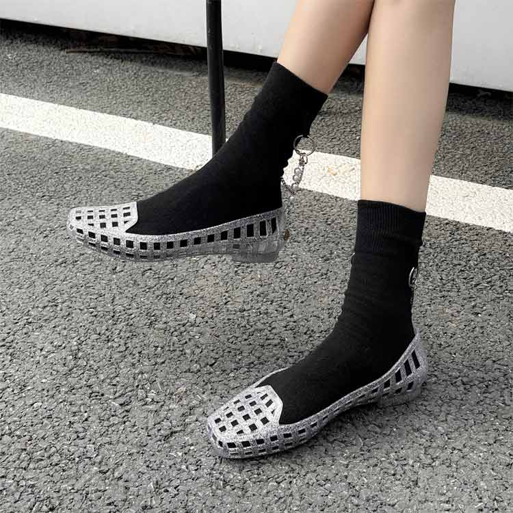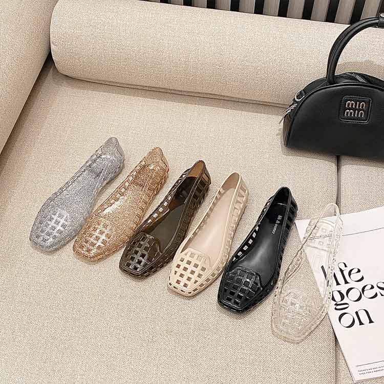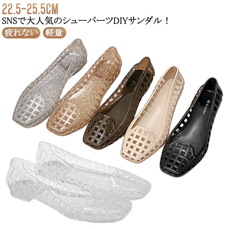 ぺたんこ グリッター 疲れにくい キラキラ 履きやすい 透かし編み模様 スリッポン ビニールサンダル 韓国 レディース 夏新作 痛くない フラットサンダル 靴 軽量 新品 疲れない 雨の日 おしゃれ