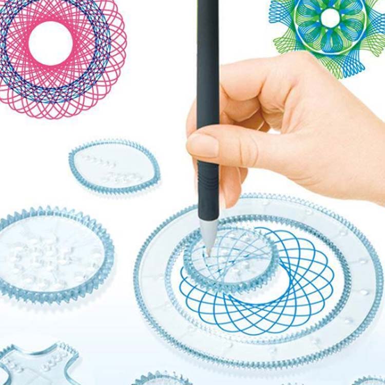 ペンと一緒にパーツをくるくる回しながら奇麗な模様を簡単に描くことが出来る知育玩具です。