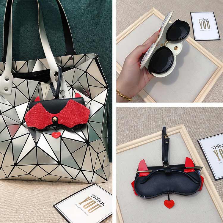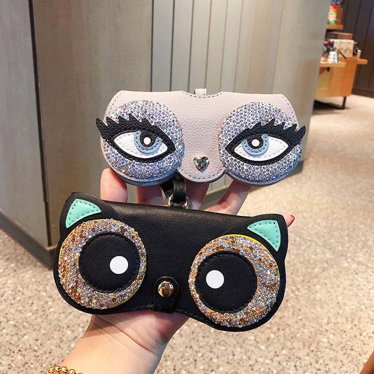 ジルコニア キラキラ きらきら サングラスカバー 人工 レザー メガネケース メガネ入れ かわいい ストラップ レディース おしゃれ ストラップ付き サングラスケース 眼鏡ケース PUレザー