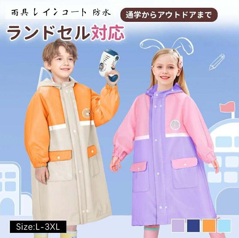 レインコート キッズ カッパ 子供 小学生 女の子 男の子 防水 撥水 入園 入学 かわいい おしゃれ ランドセル 雨具 幼稚園 通学 遠足 レジャー ジュニア レインウェア フ 学校