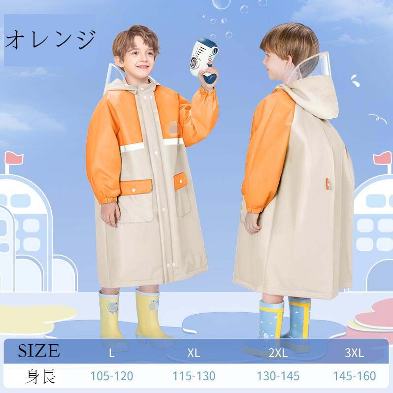 レインコート キッズ カッパ 子供 小 キッズ ベビー マタニティ 特集 ブルー オレンジ パープル 紺色 L XL 2XL 3XL