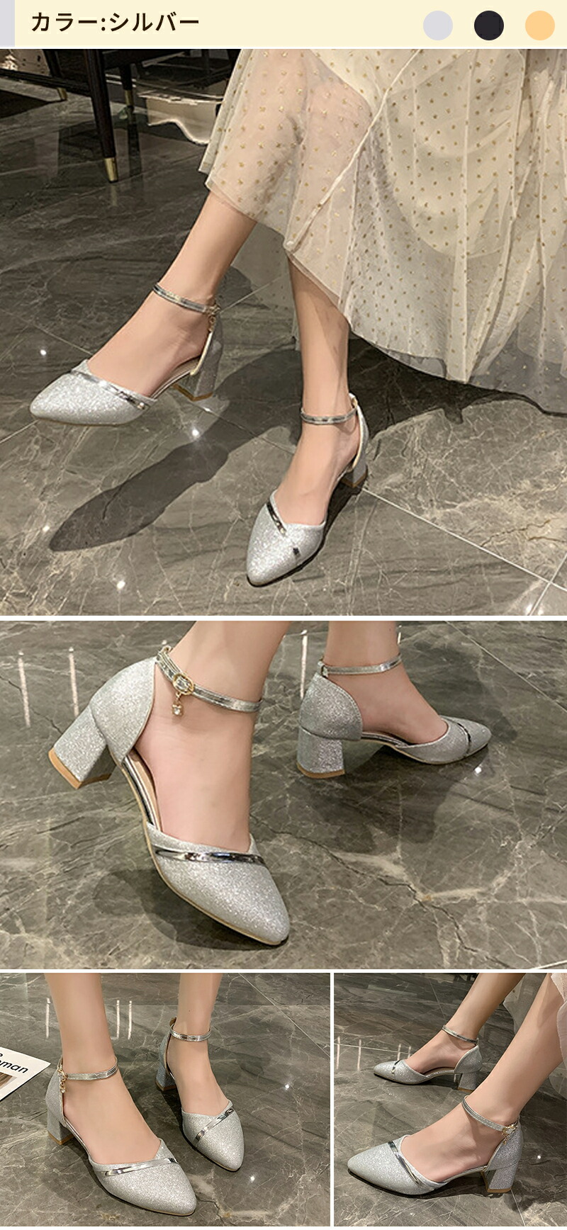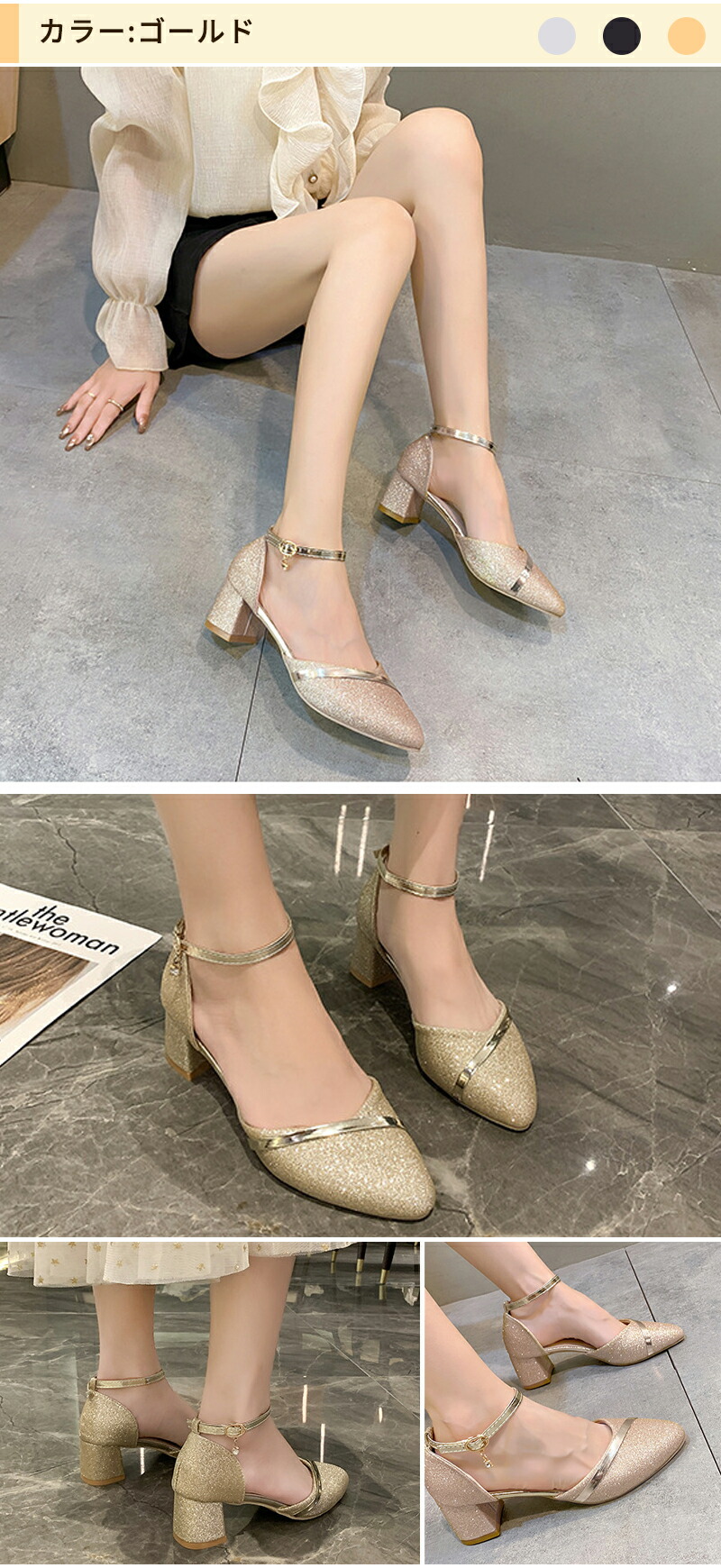 パンプス チャンキーヒール フォーマル 靴 早い者勝ち ブラック シルバー ゴールド 34(内寸22.0cm) 35(内寸22.5cm) 36(内寸23.0cm) 37(内寸23.5cm) 38(内寸24.0cm) 39(内寸24.5cm) 40(内寸25.0cm)