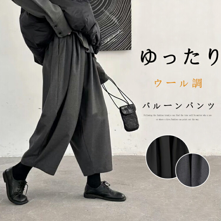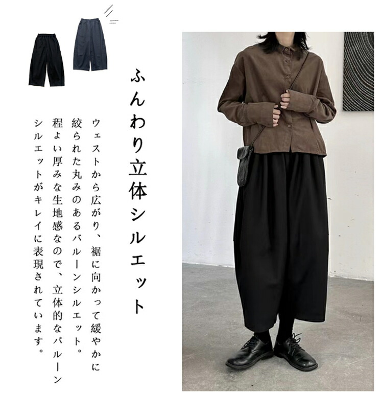 バルーンパンツ レディース 秋冬 ウール調 ワイドパンツ 九分丈 コクーンパンツ 大きいサイズ ゆったり カーブパンツ フェイクウール ワイド サーカスパンツ ウールパンツ サルエルパンツ