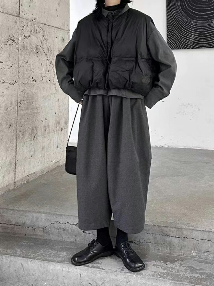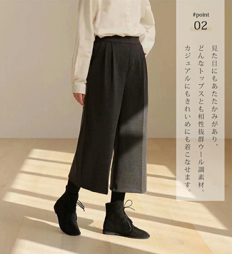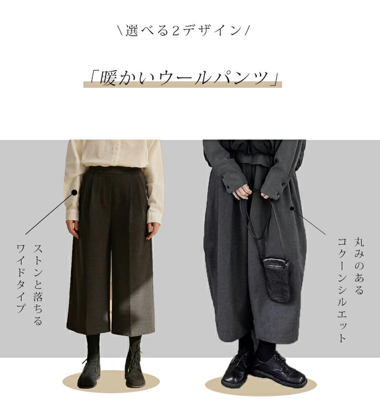 ウール調 ガウチョパンツ 秋冬 ワイド レディースファッション 早い者勝ち ブラック グレー ワイド コクーン
