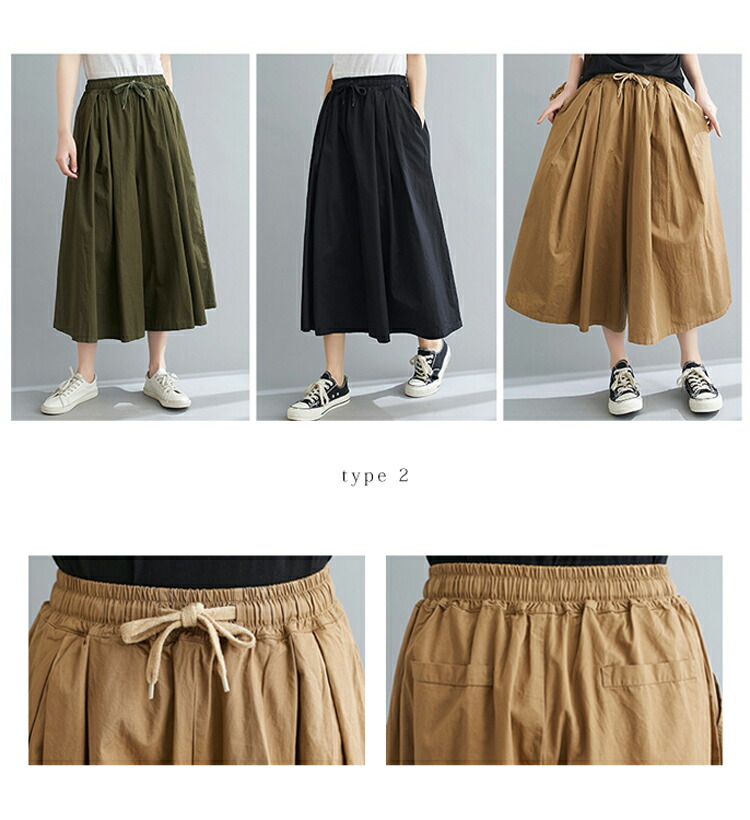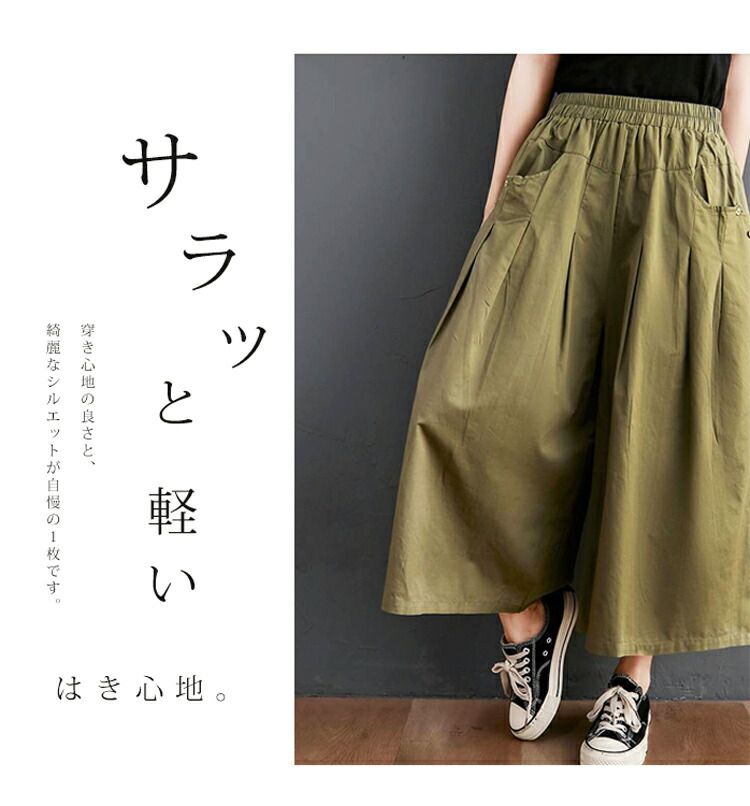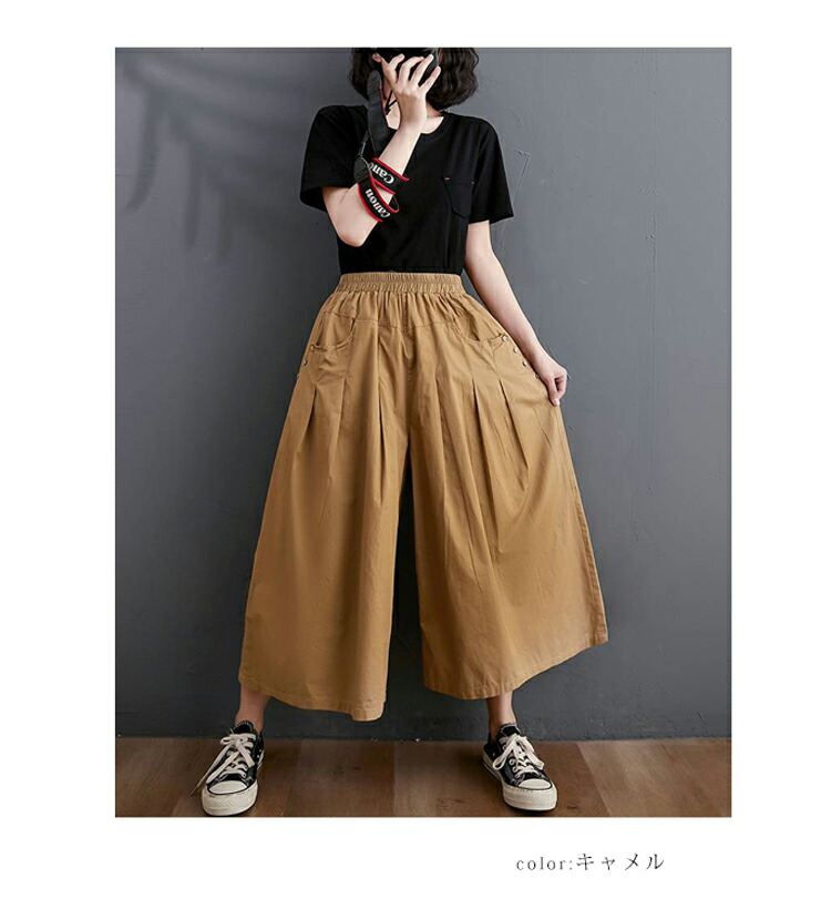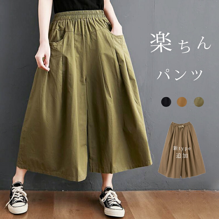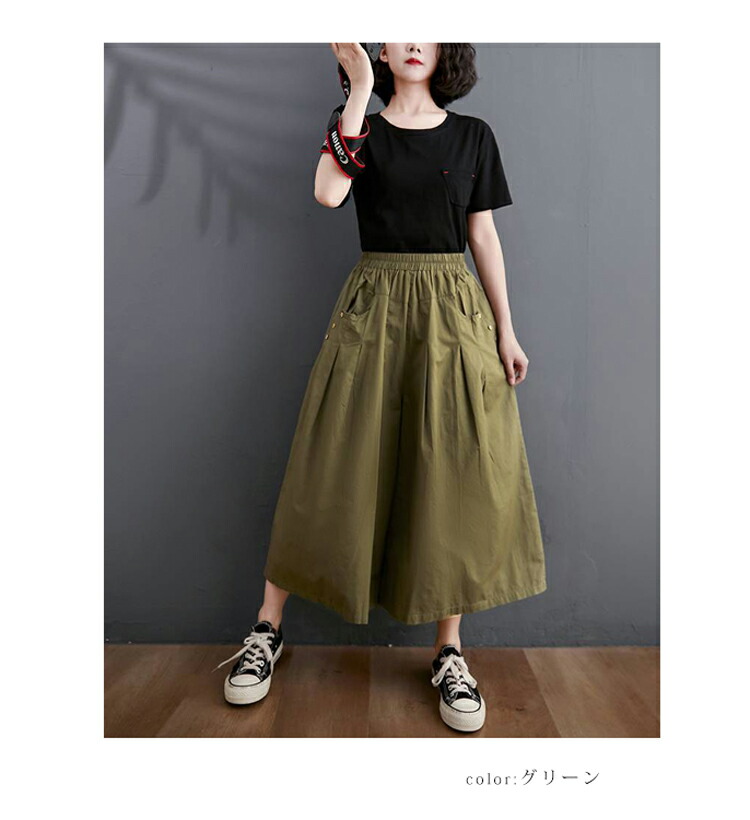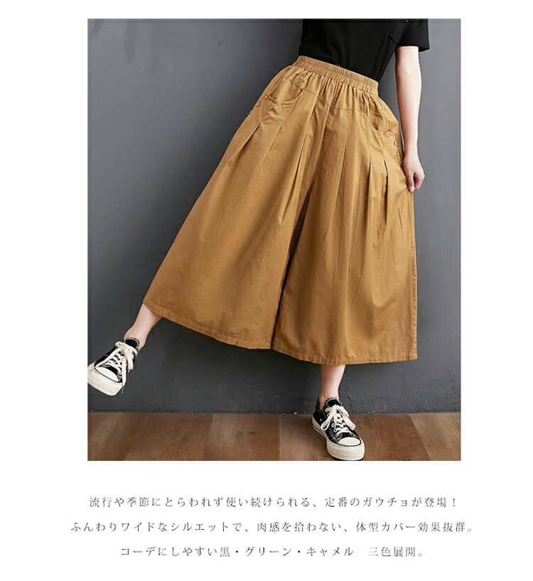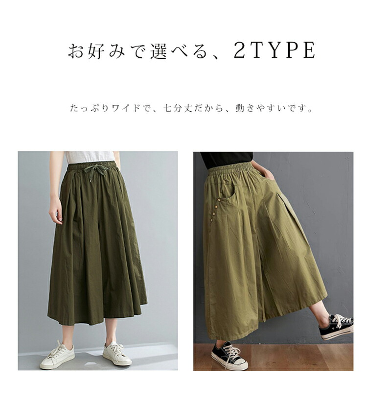 ワイドパンツ レディース 大きいサイズ ボトムス キュロットスカート 新作 type 1 type 2 グリーン キャメル ブラック
