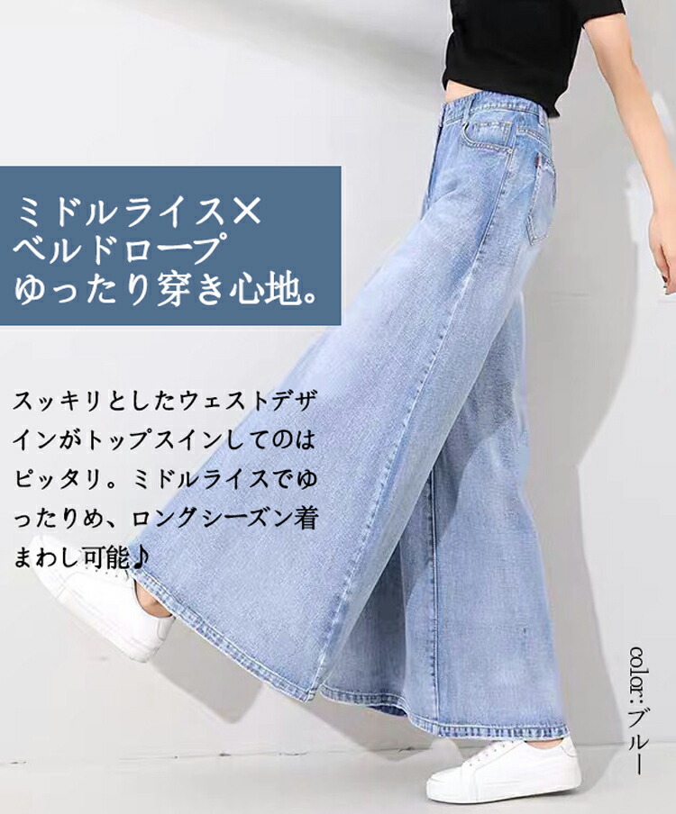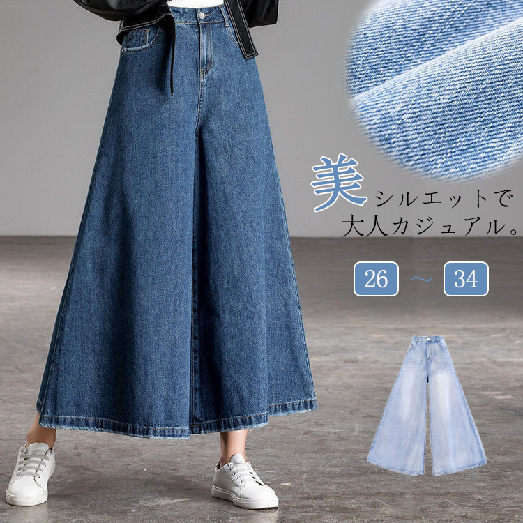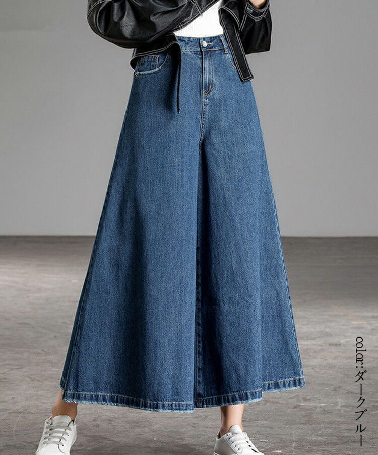 ワイドパンツ レディース デニム ガウ ボトムス キュロットスカート 早い者勝ち 26 27 28 29 30 31 32 33 34 ブルー ダークブルー