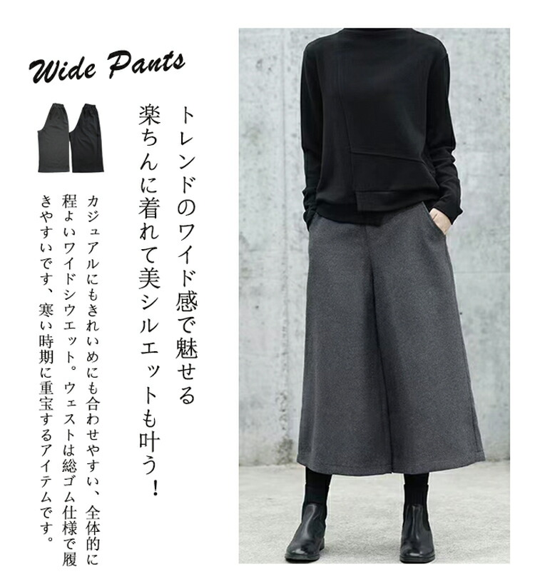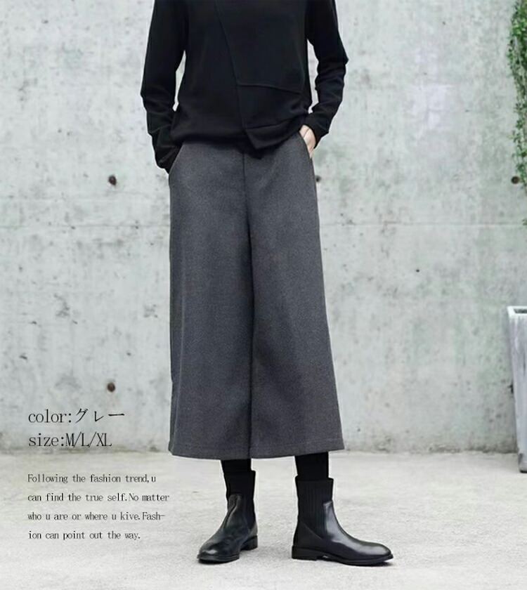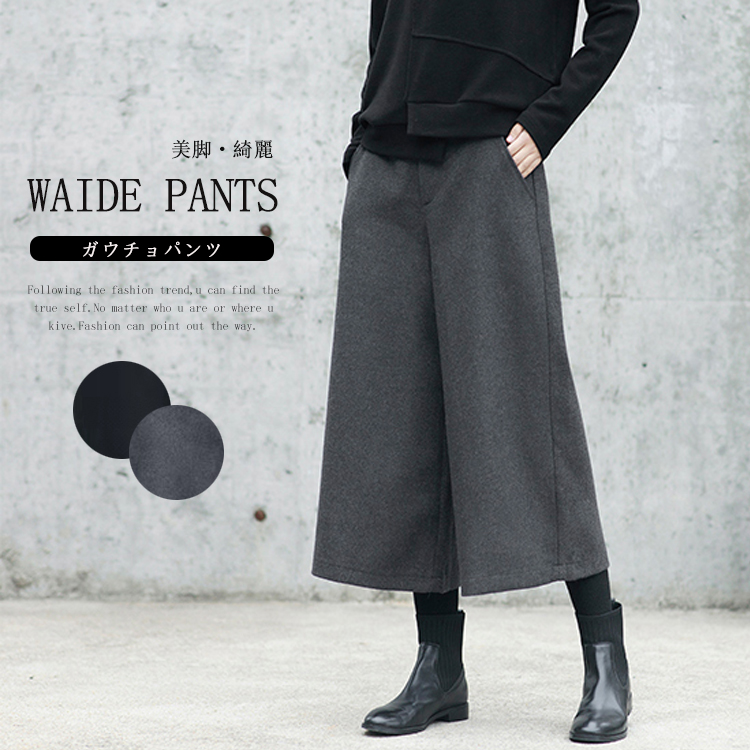 ウール調 ガウチョパンツ 秋冬 キュロ ボトムス キュロットスカート 続々入荷中 M L XL ブラック グレー