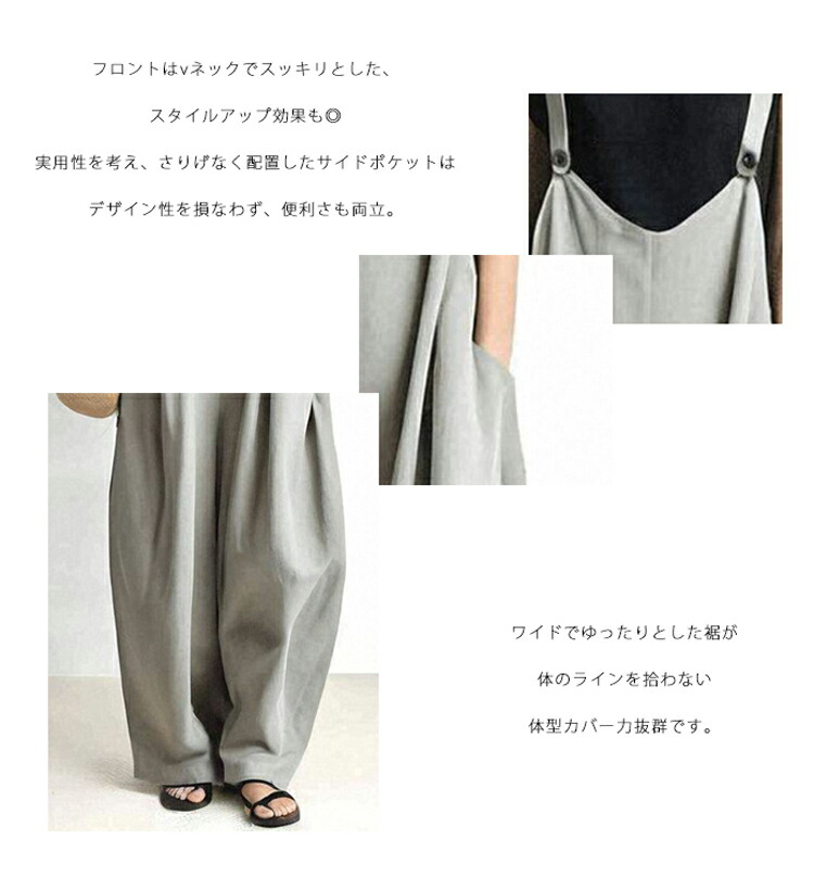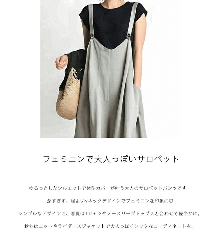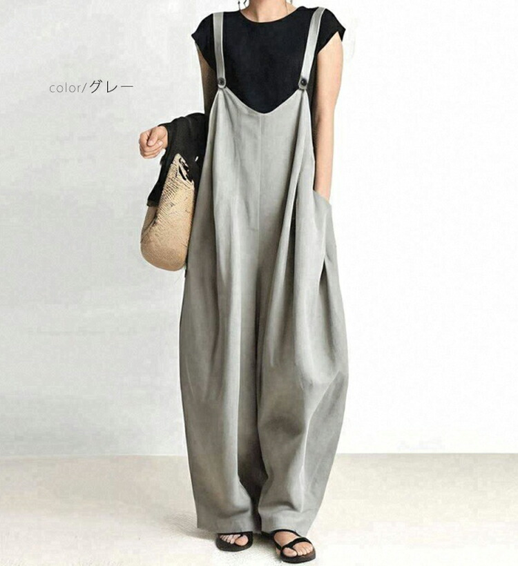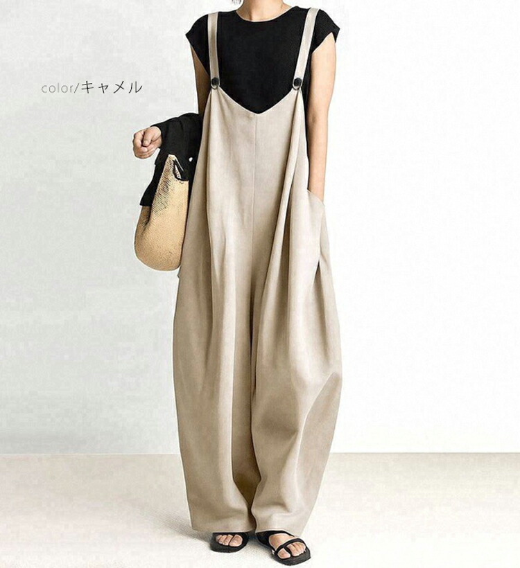 サロペット パンツ レディース 大きい レディースファッション 早い者勝ち グレー ネイビー キャメル