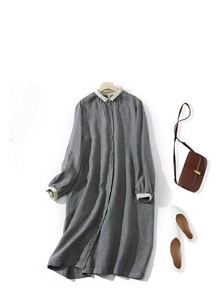 シャツワンピース 春秋 ワンピース 長 M L XL 2XL