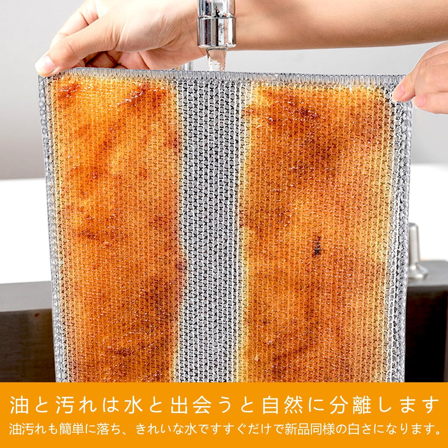 油汚れをサッと吸着し、時間と手間を節約。しつこい油汚れが、水を流すだけできれいに! 水でさっと流すだけで油汚れもスルット落ちる。頑固な油汚れを落とす、時短便利を叶う!