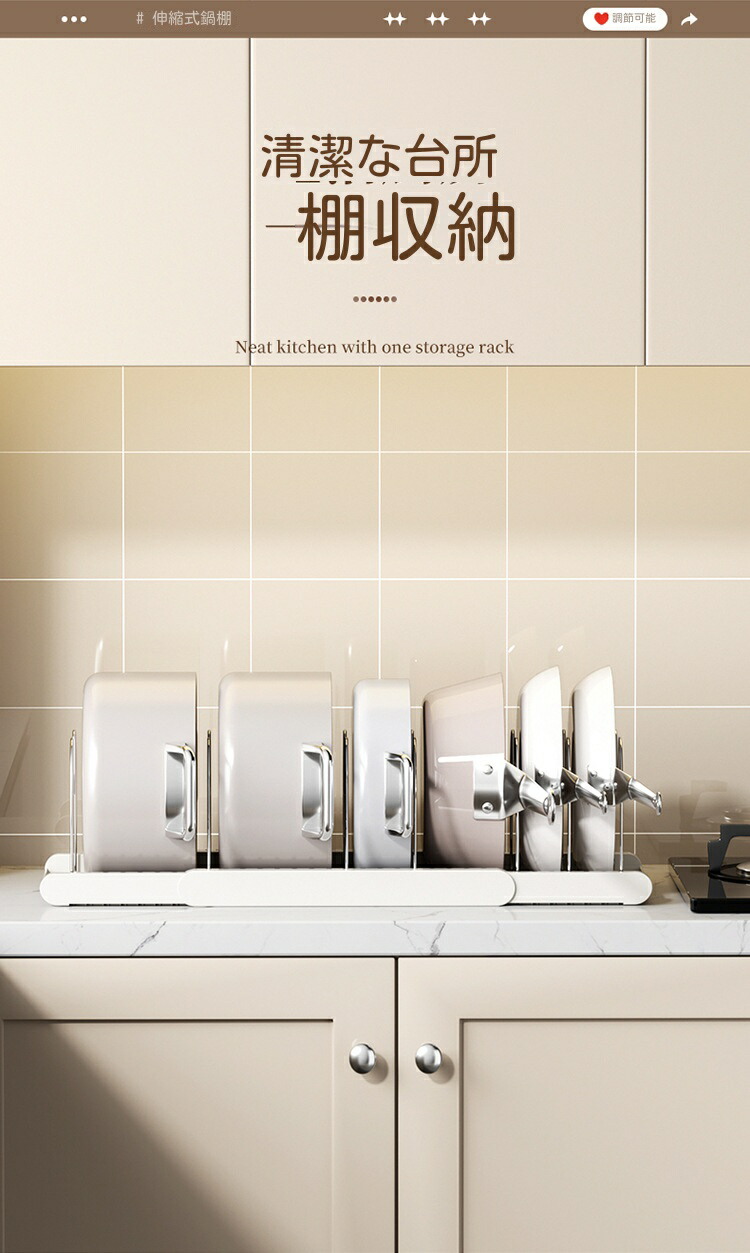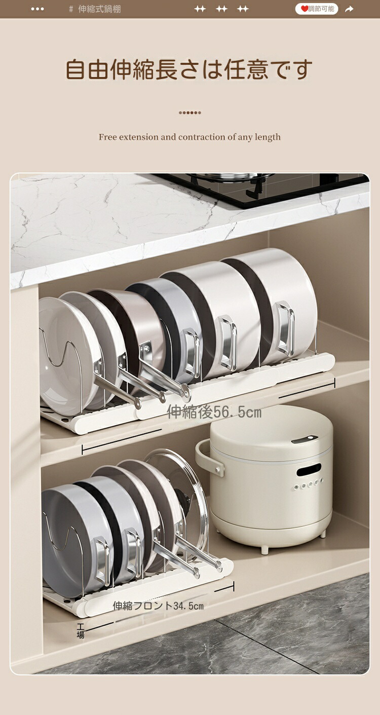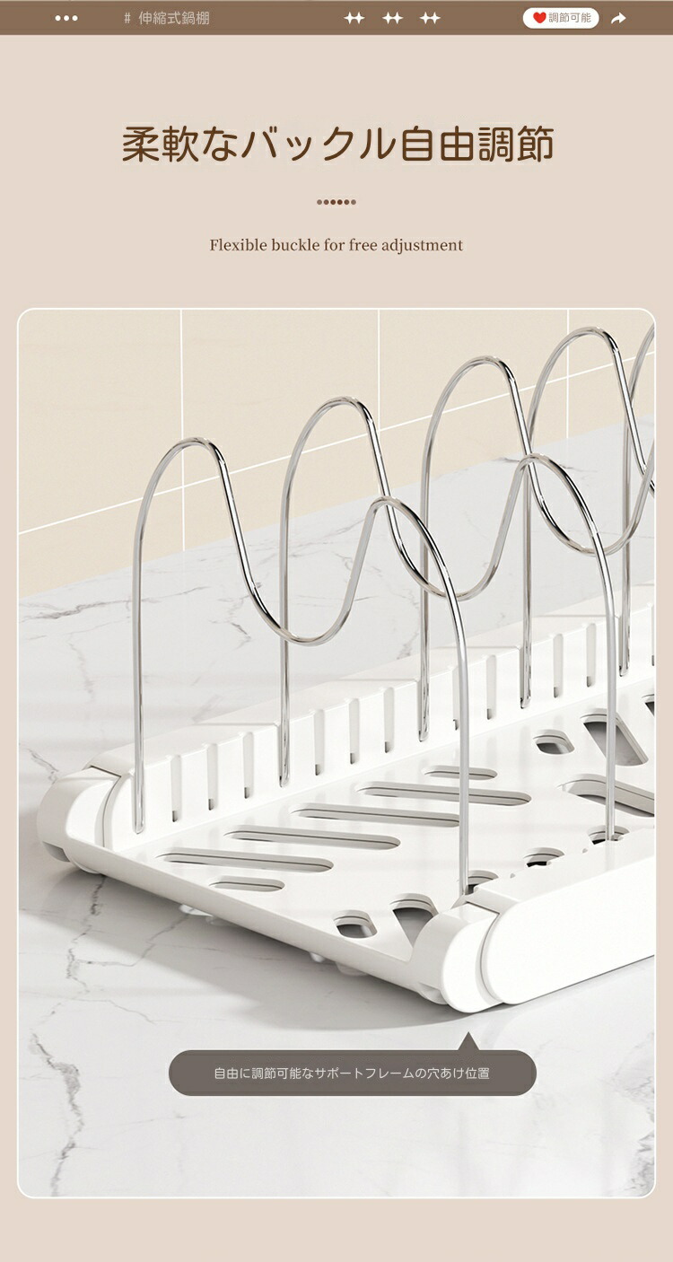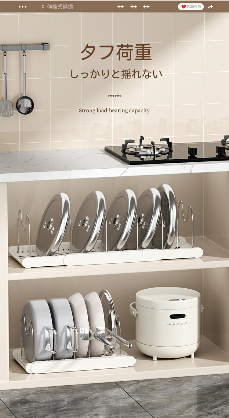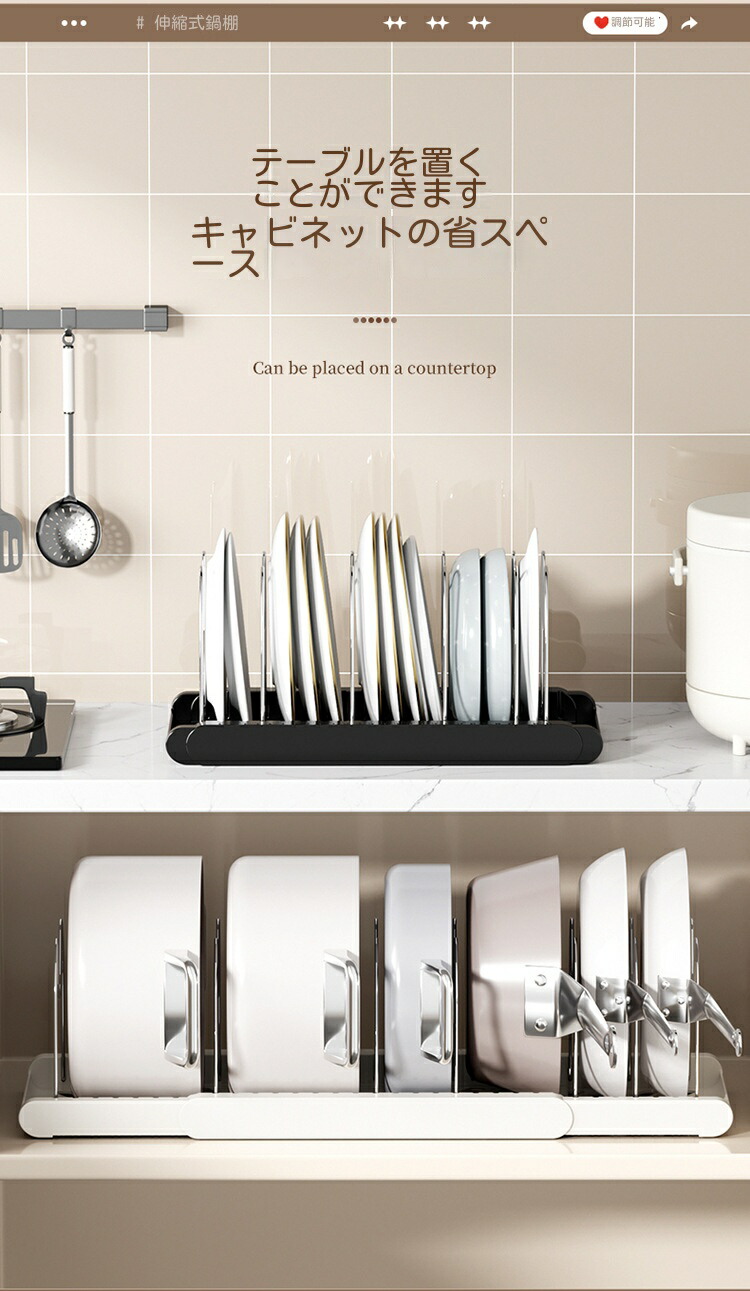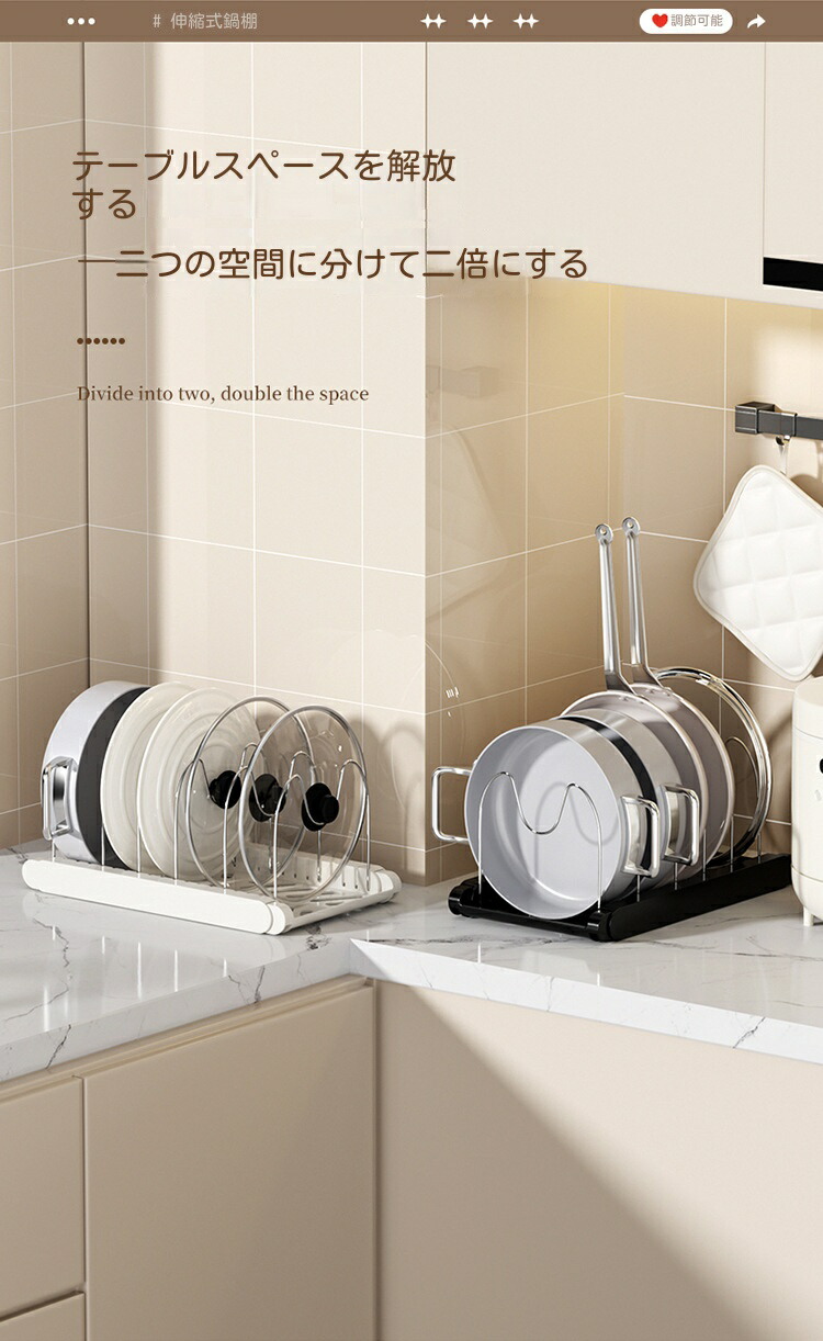 三段伸縮鍋収納棚 伸縮式 フライパンラ キッチン整理用品 調理小道具立て 早い者勝ち ホワイト ブラック