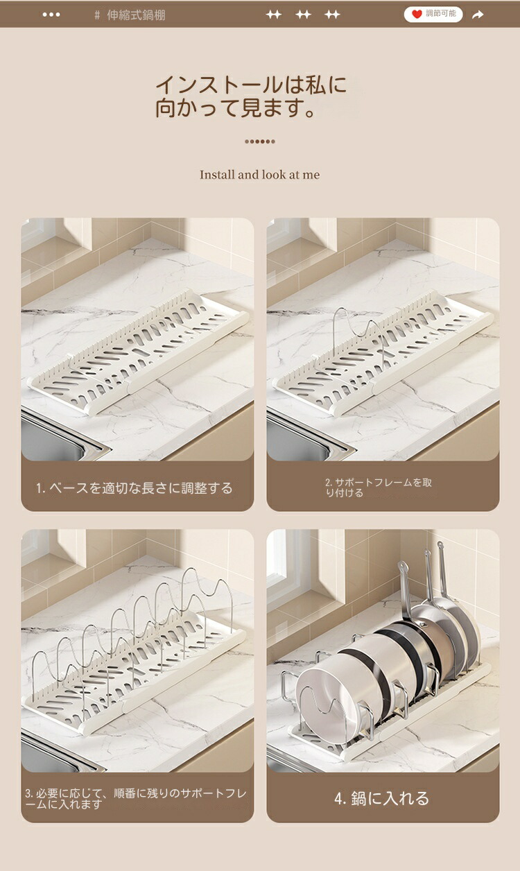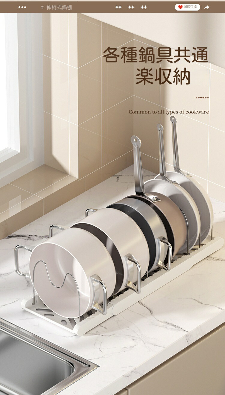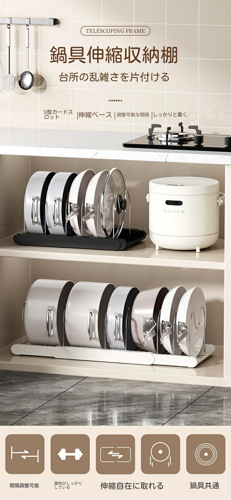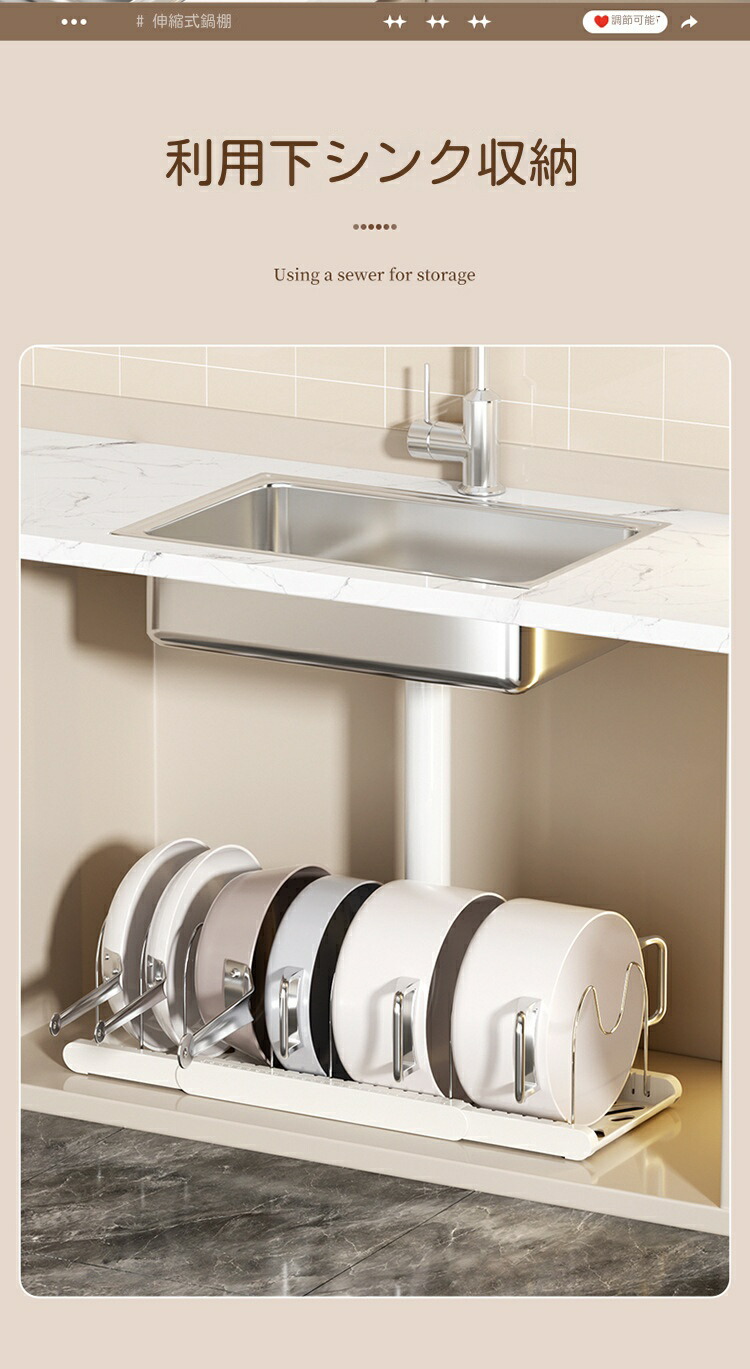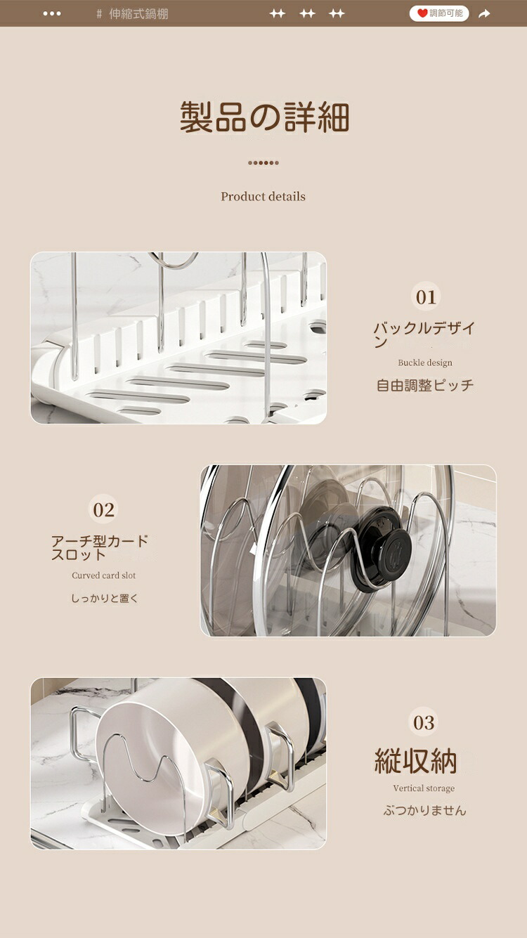 三段伸縮鍋収納棚 伸縮式 フライパンラ キッチン整理用品 調理小道具立て 早い者勝ち ホワイト ブラック