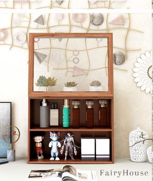 化粧品整理: ブラシやリップなど、毎日使うアイテムをまとめておしゃれに収納。