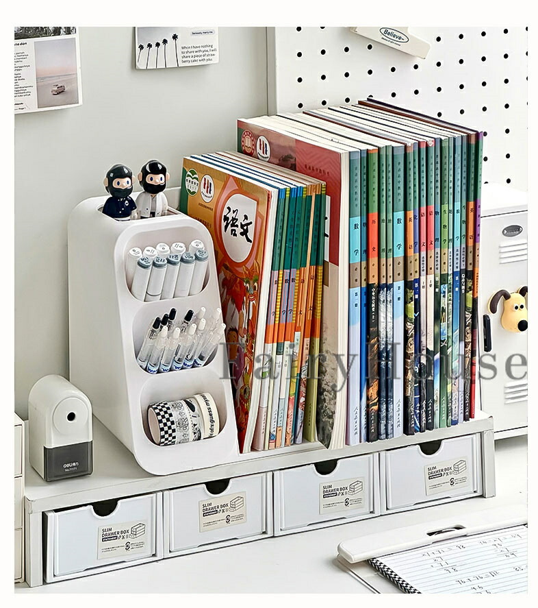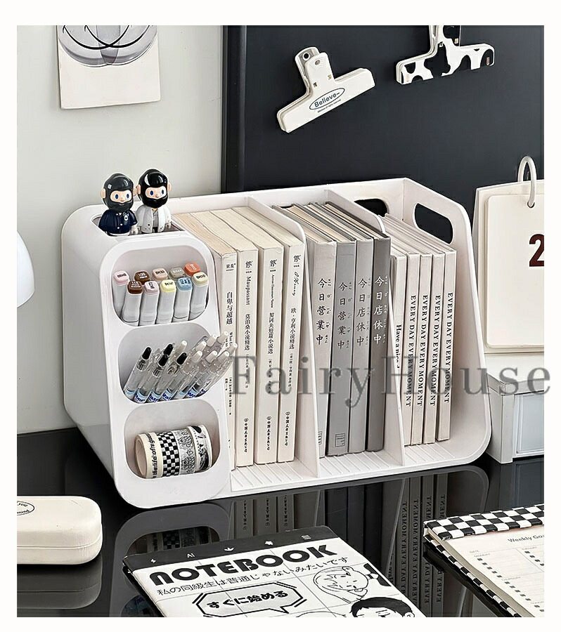 ファイルボックス 本棚 雑誌収納ボックス 多機能 マガジンラック ボールペン 消しゴム 収納ケース ブックスタンド 収納ラック 書類整理 本立て 整理棚 卓上 ファイル スリム インテリア 文机 収納