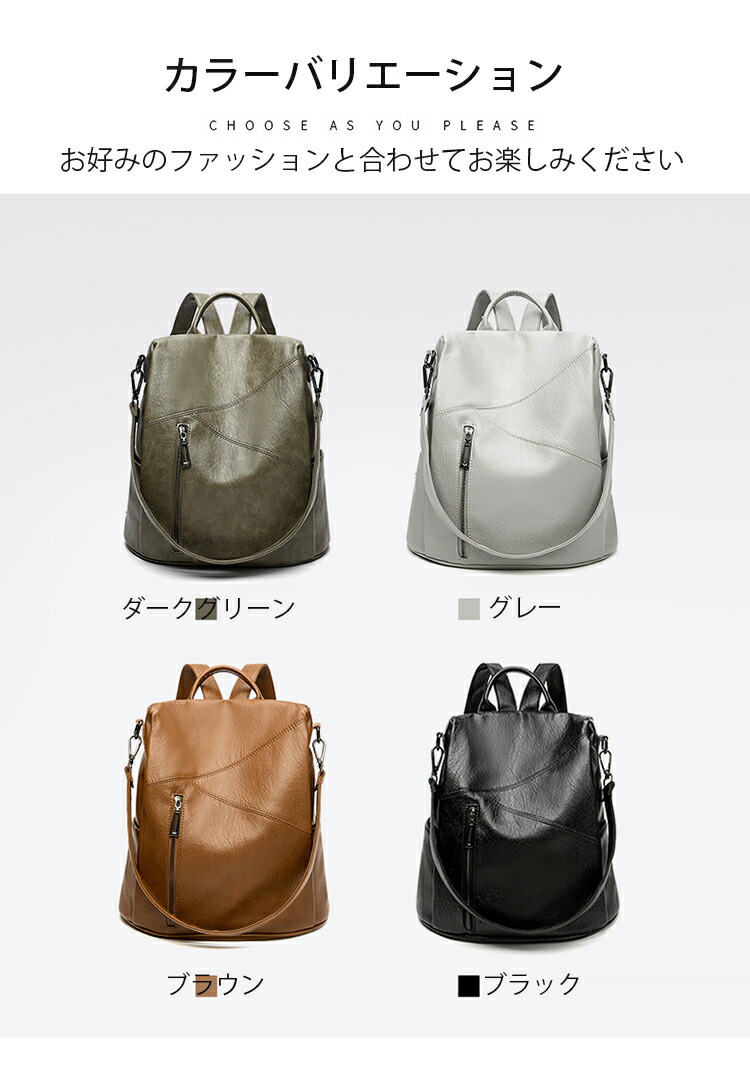 新色入荷 防犯 リュック レディース バッグ 小物 ブランド雑貨 続々登場 ブラック グレー ブラウン ダークグリーン