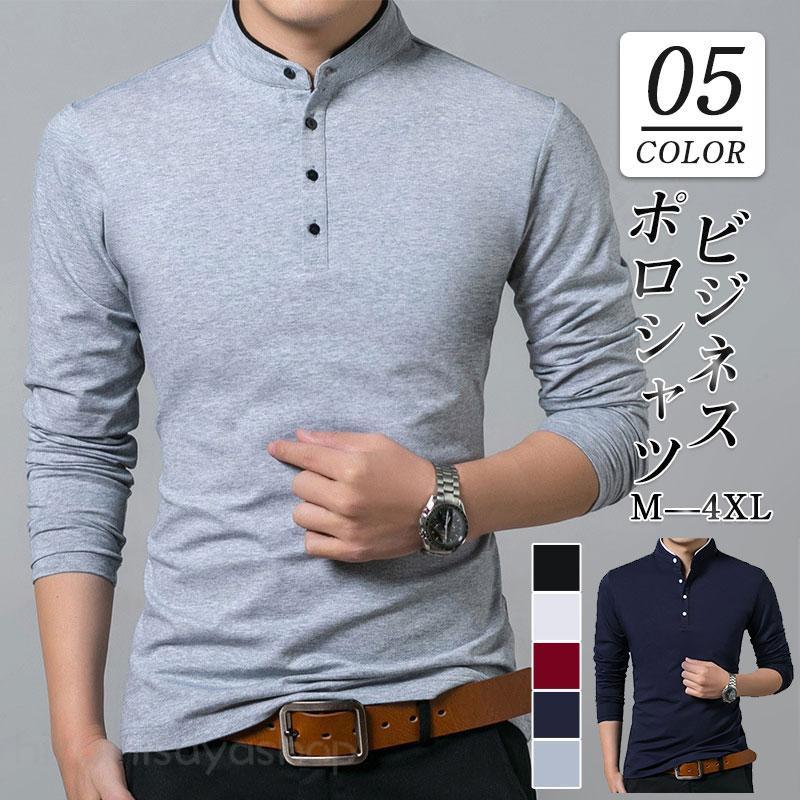 ポロシャツ メンズ ゴルフシャツ 長袖 立ち襟 Tシャツ カジュアル ビジネス おしゃれ Polo ゴルフウェア 秋冬 無地 スポーツ 紳士服