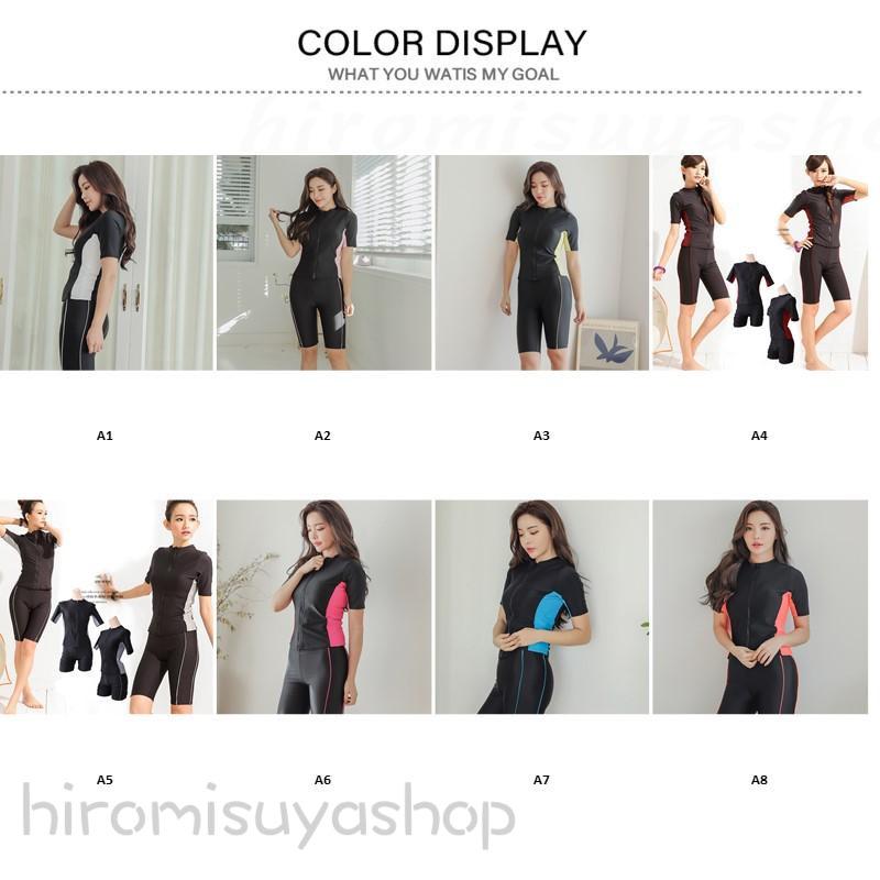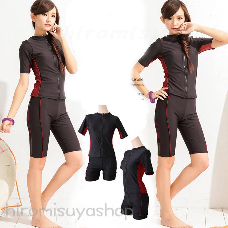 水着 レディース フィットネス水着 セパレート 水着 半袖 めくれ防止 ジム プール 競泳水着 フロントジッパー 2点セット 水陸両用 体型カバー 水着 レディース フィットネス