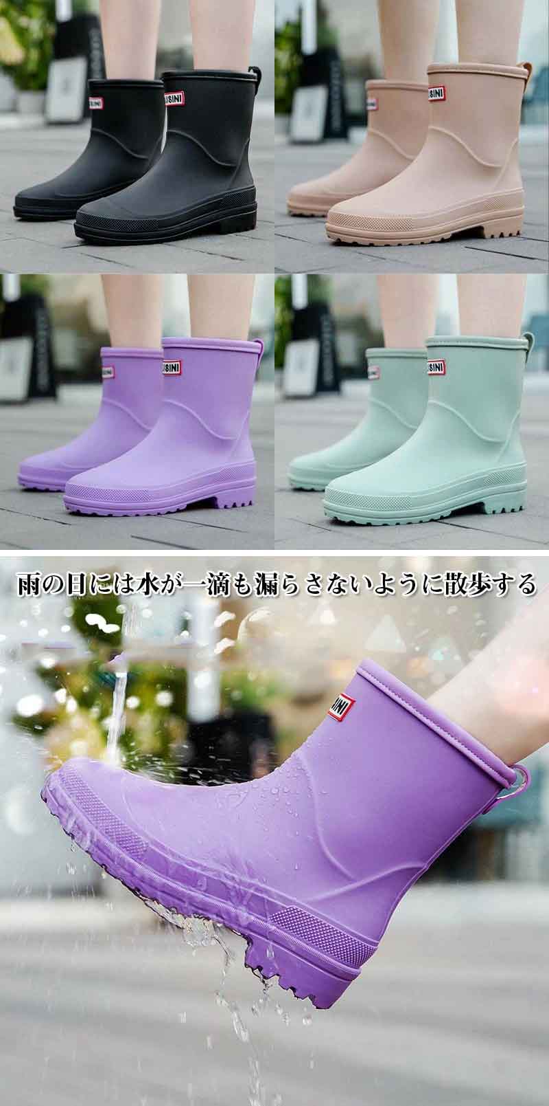 レインブーツ レディース メンズ 長靴 レディース靴 レインシューズ 長靴 ブーツ 特集 ブラック カーキ色 グリーン パープル ピンク 23cm(36) 23.5cm(37) 24cm(38) 24.5cm(39) 25cm(40) 25.5cm(41)