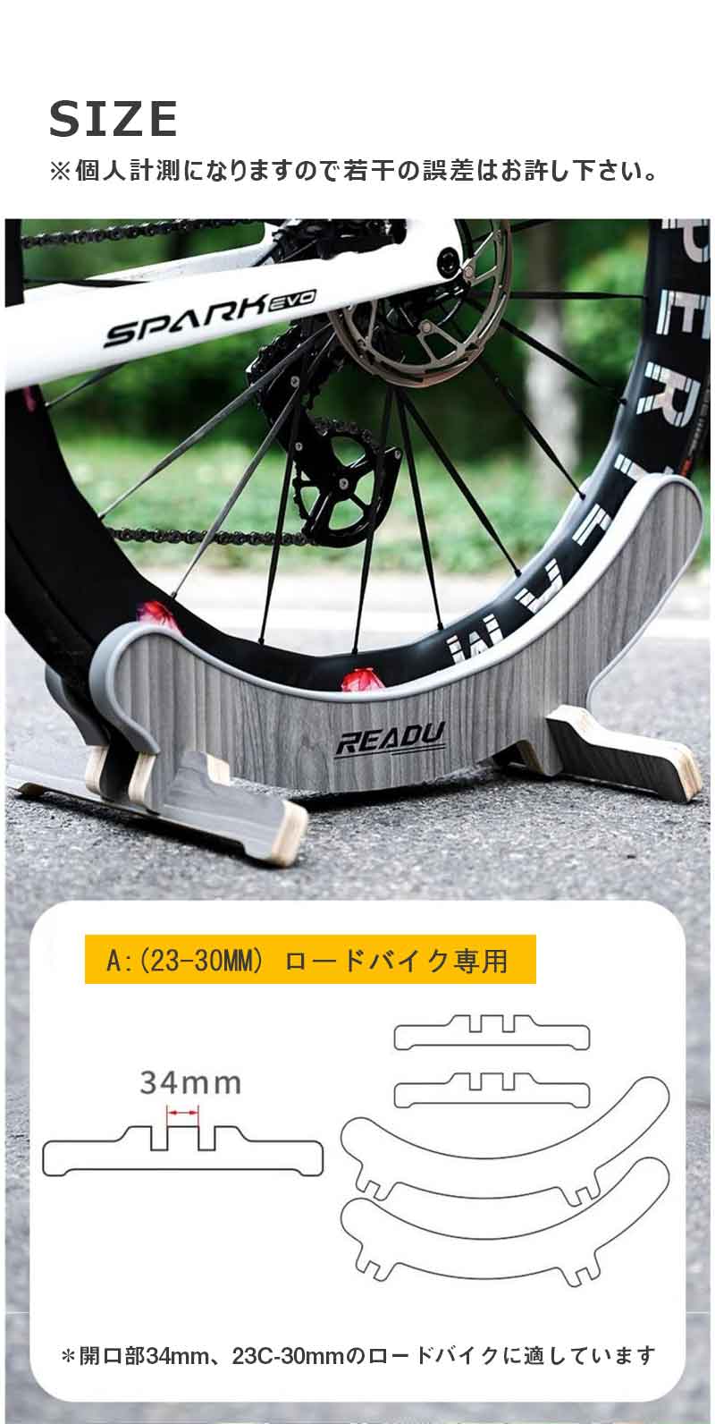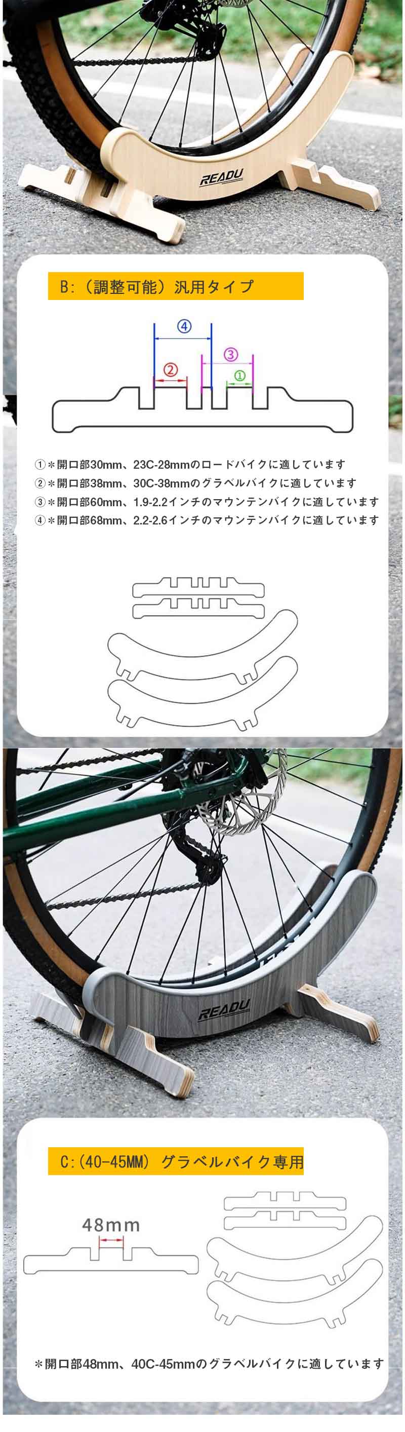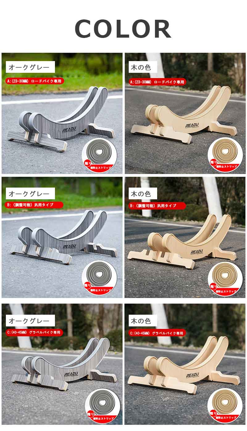 サイクルポジション 自転車止め おしゃ オークグレー 木の色 A:(23-30mm) ロードバイク専用 B:(調整可能)汎用タイプ C:(40-45mm) グラベルバイク専用