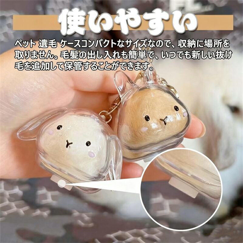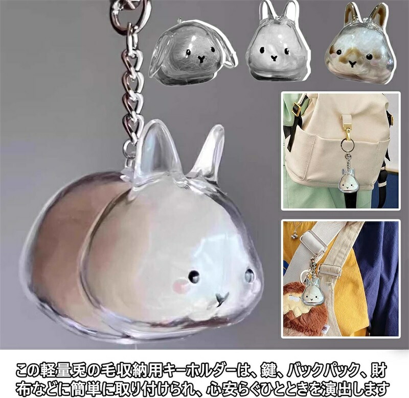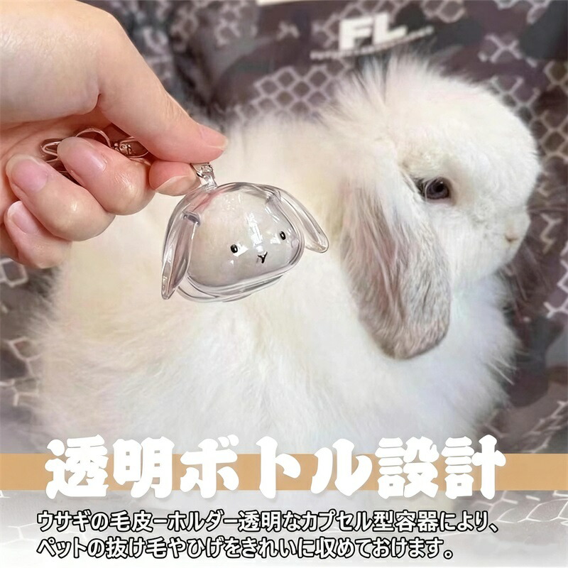【多機能収納アクセサリー】毛の保管はもちろん、ビーズや小物入れとしても活用可能なウサギの毛キーホルダー。全ての小動物ペットに対応する実用的な収納ケースです。