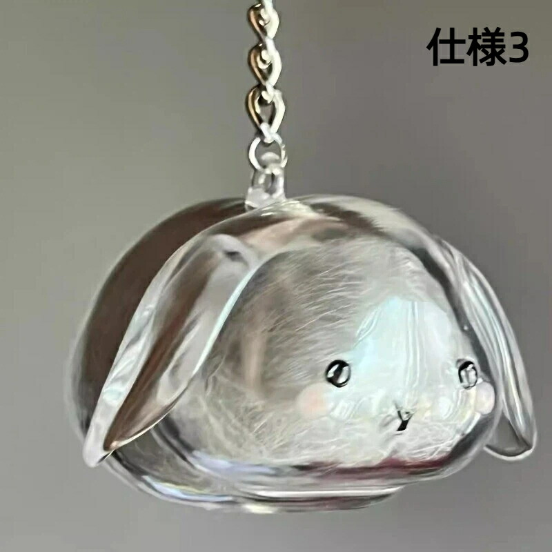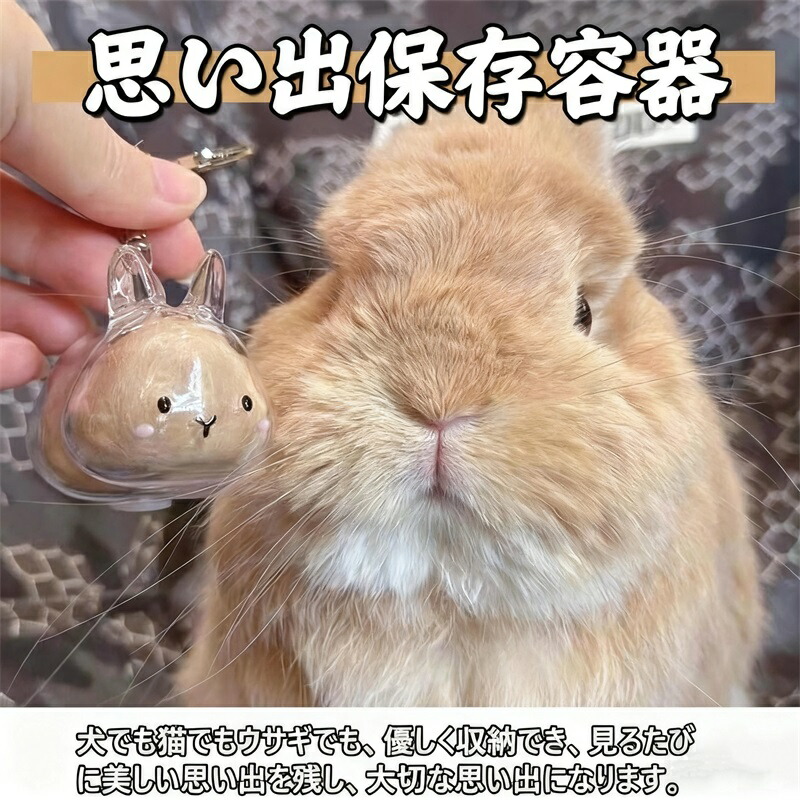 【愛らしい3Dウサギデザイン】カプセルトイ風の可愛い外観がインテリアとしても映えるペット遺毛キーホルダー。ペット愛好家への贈り物に最適な温もりあるデザインです。