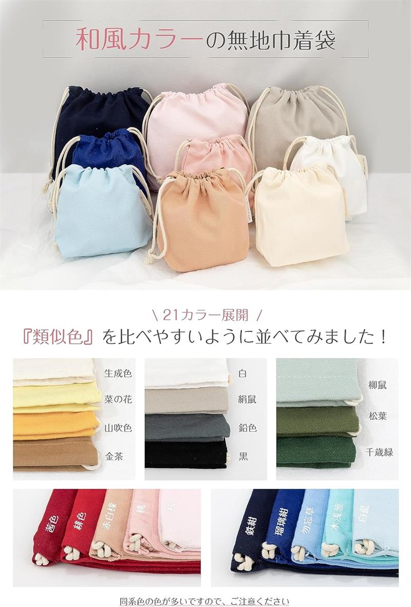 巾着袋 小 大 巾着 袋 無地 おしゃ キッズ バッグ ランドセル 巾着袋 新作 白 桜 桃 緋色 茜色 赤白橡 金茶 山吹色 菜の花 生成色 絹鼠 柳鼠 千歳緑 松葉 鉛色 黒 瑠璃紺 勿忘草 白藍 水浅葱