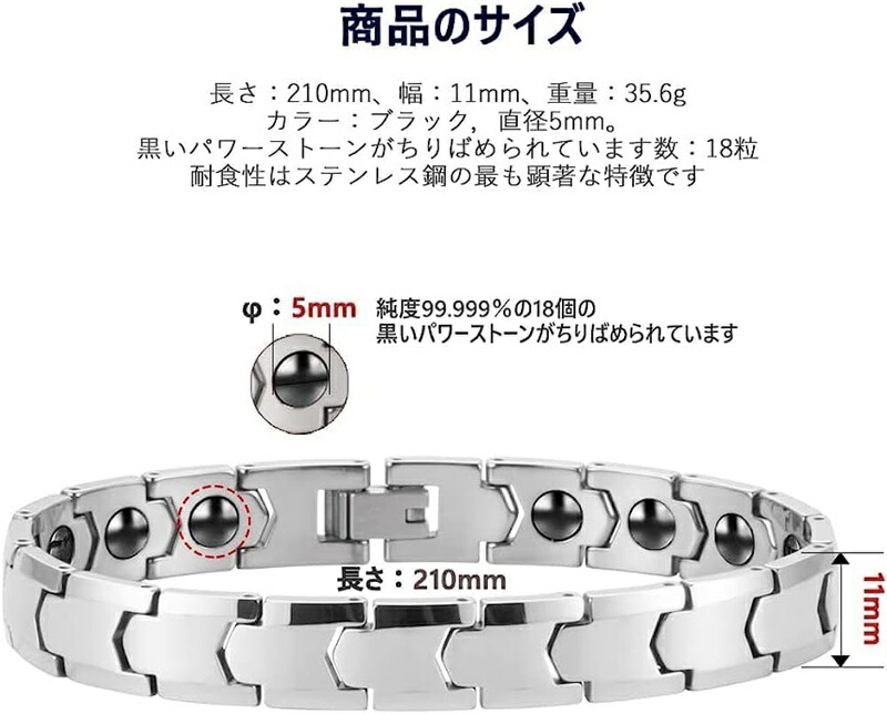ブレスレットメンズ ゲルマニウム ステンレス 磁気純度99.99% 静電気除去 メンズ ブレスレット 長さ調節 健康