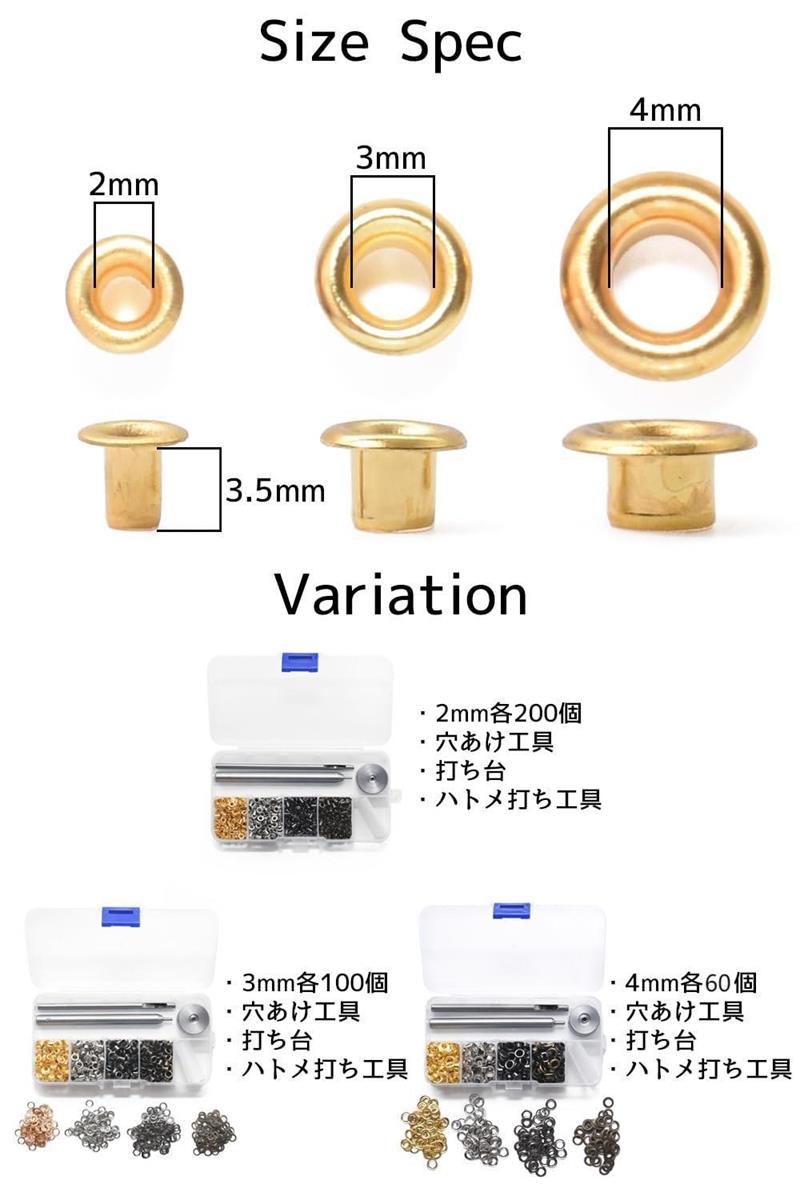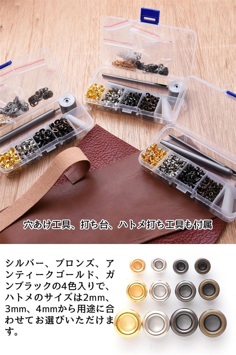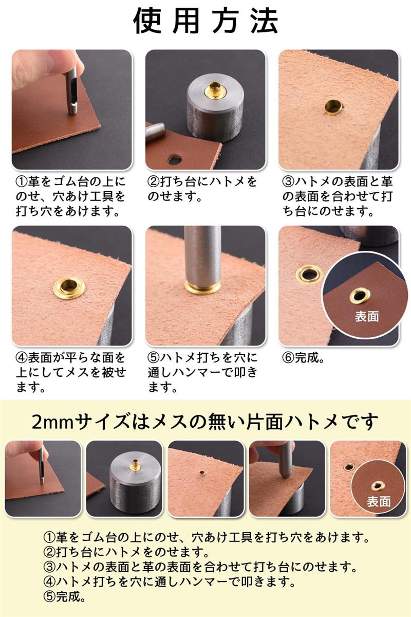 レザークラフト ハトメ 穴あけポンチ ハトメ割りうち台 はとめセット 2mm 3mm 釘 金属素材 その他 4mmネジ