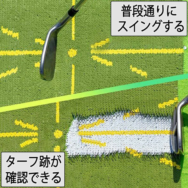 スイング後にクラブヘッドの軌道が残るゴルフ練習マット。スイング軌道を視覚的に確認しながら効果的な練習ができます。