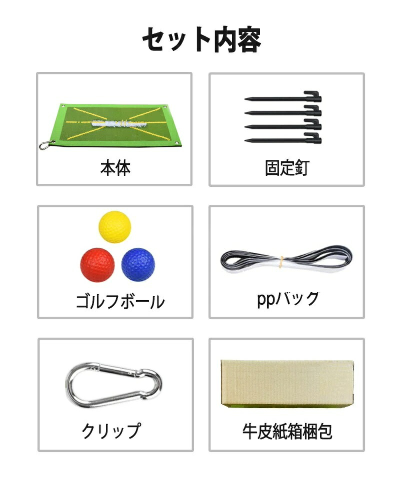 ボール位置、ティーポイント、方向などのガイドが付いているので、距離感や入射角、インパクトの強さも調整がしやすくなっています。