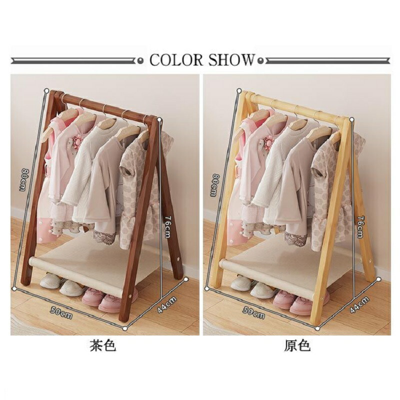 【おしゃれで機能的な木製ハンガーラック】 ナチュラルな木製のハンガーラックは、お子さまの服やカバンをすっきり整理できる収納アイテムです。シンプルなデザインで、どんな子ども部屋にも自然に溶け込み、お部屋をおしゃれに整えます。キッズ収納として、成長に合わせて長くお使いいただける商品です。