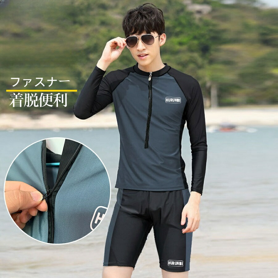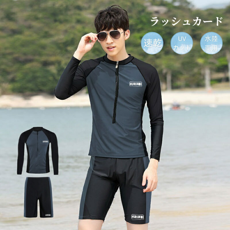 水着 メンズ 上下セット ラッシュガード セット 上下 長袖 速乾 大きいサイズ 20代 30代 40代 ショートパンツ 競泳 練習用 海 温泉 プール M L XL 砂浜