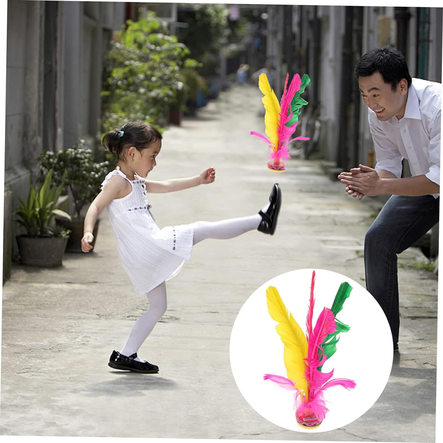 子供たちは羽根を蹴ります。能力を向上させ、足と目の協調を促進する素晴らしいおもちゃです。