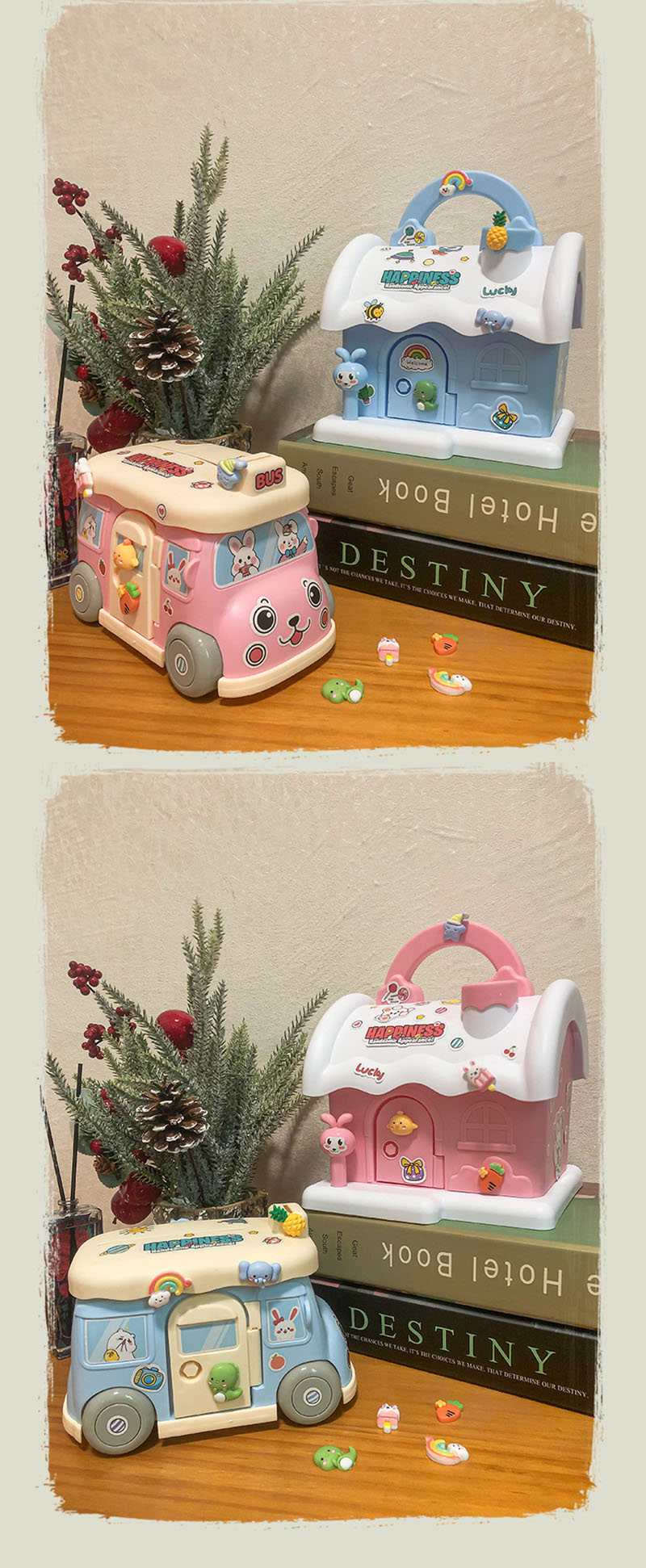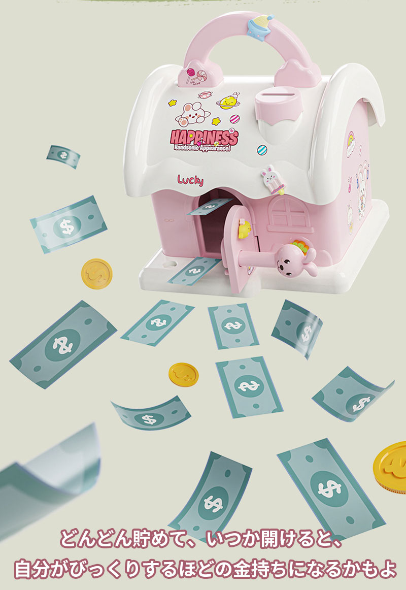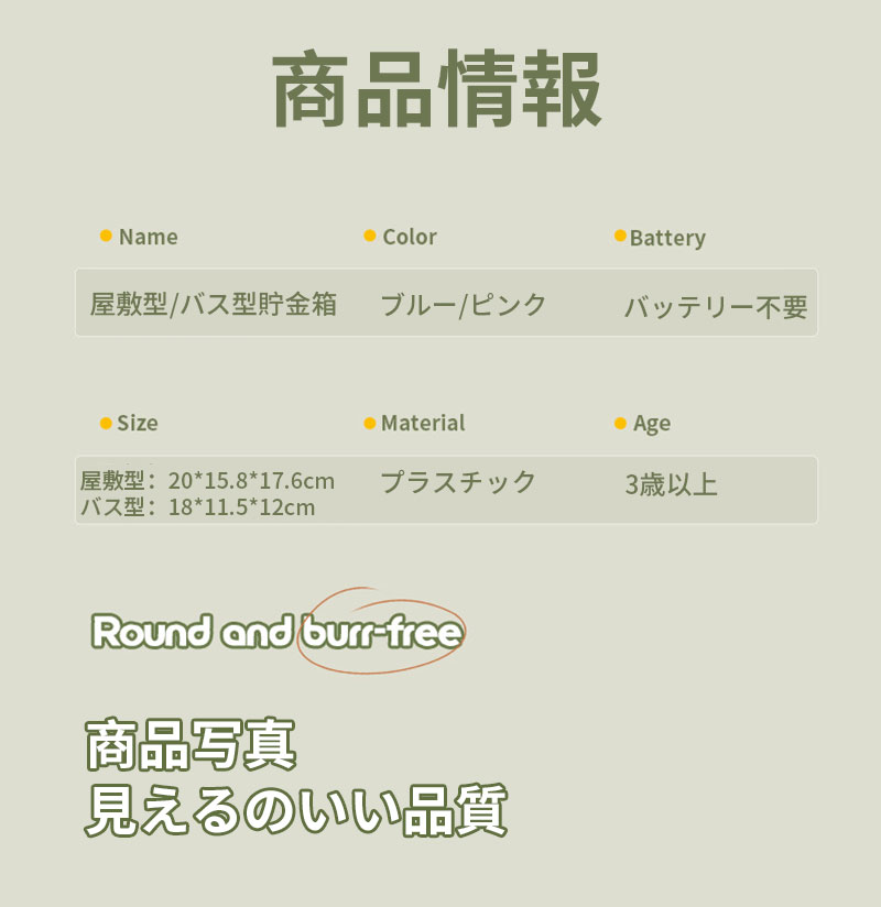 貯金箱 おしゃれ かわいい 子供 硬貨 ピンク ブルー 屋敷 バス