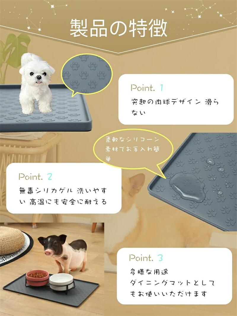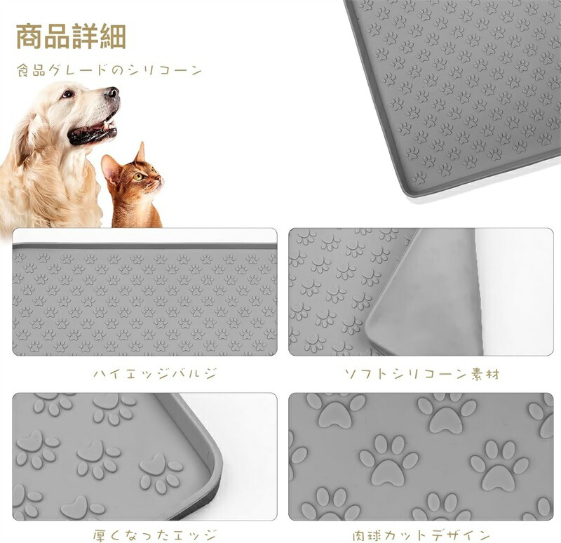 マット ペット用 犬 猫 エサ トレー シリコン ペットマット フードトレー ペットトイレトレー トイレエサ皿 ボウル置き用 ペット用食事マット 防水 洗えるエッジ加工で漏れ安心 トイレマッ 滑り止め