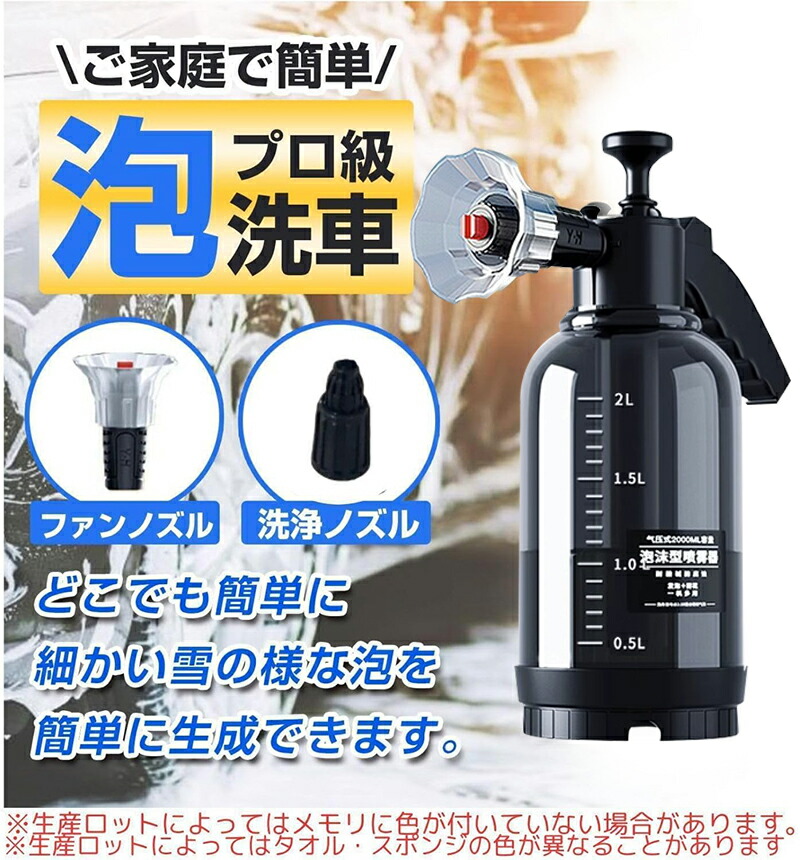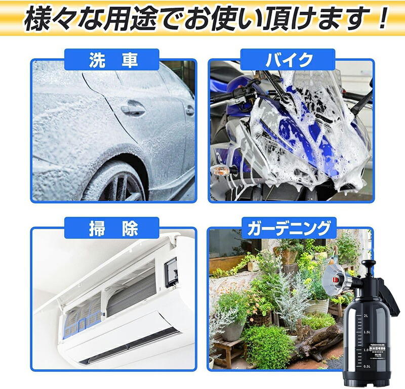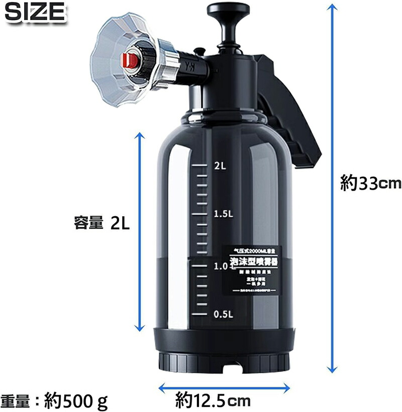 2L 蓄圧式洗車クリーナー 発泡スプレー 蓄圧式 噴霧器 洗車フォームガン 手洗い洗車 泡立てポンプブラスター 泡ブラスター 手動加圧 加圧ポンプ式噴射器 洗車 電源不要 家庭用泡噴霧器 ガーデニング