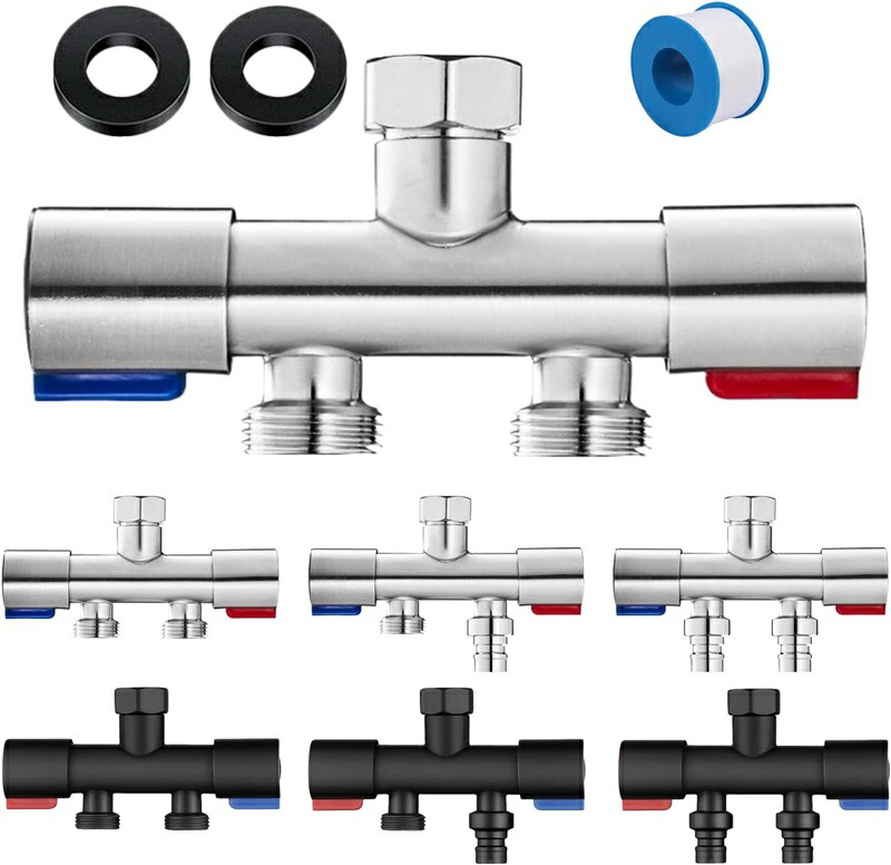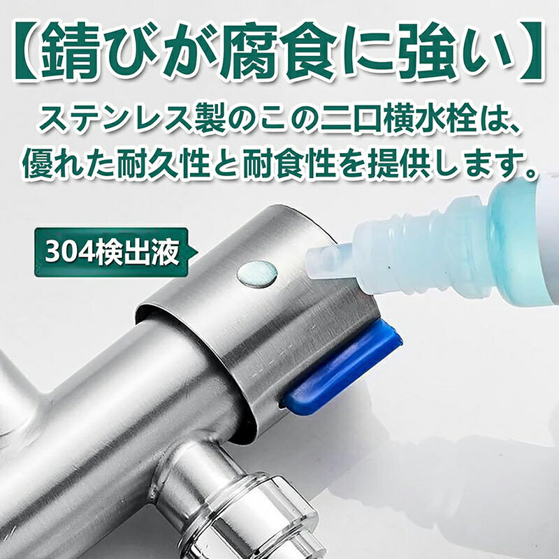 蛇口 二股 分岐 水道 分岐栓 キッチン 分岐バルブ 水栓 洗濯機 分岐蛇口 ステンレス 二口水栓 表面処理 耐食性 交換部品 シールテープ付き ベランダ ガーデン 洗濯 お風呂 洗面所 浴室 食洗機