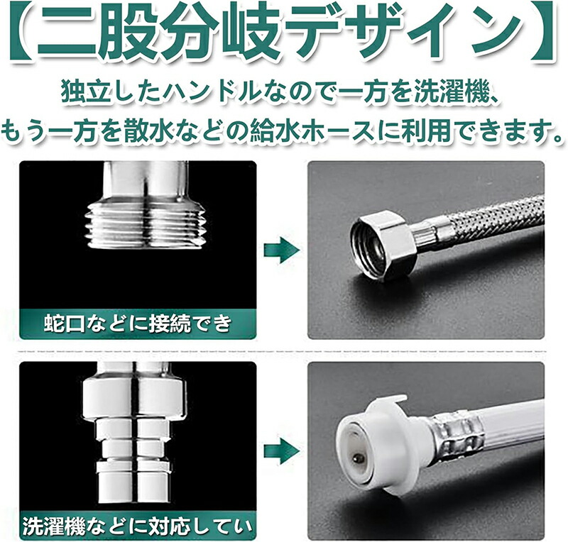 インストールと使用が簡単です,優れた製品ですから、様々の場所に使えできます。洗濯機の蛇口だけではなく、バスルーム、バスタブ、庭などにもつかわれできます。、洗濯機の水栓を分岐させることができ、介護施設、医療施設、社宅、寮などで洗濯物が多い場合に便利です。