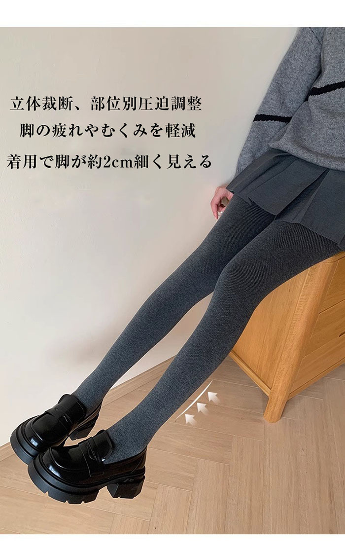 【温かさとすっきり美脚を両立】立体編みの圧力効果で脚を優しく締め付け、すっきりとした美脚ラインに導きます。綿混素材と太め縦アタック編みがしっかり防寒。