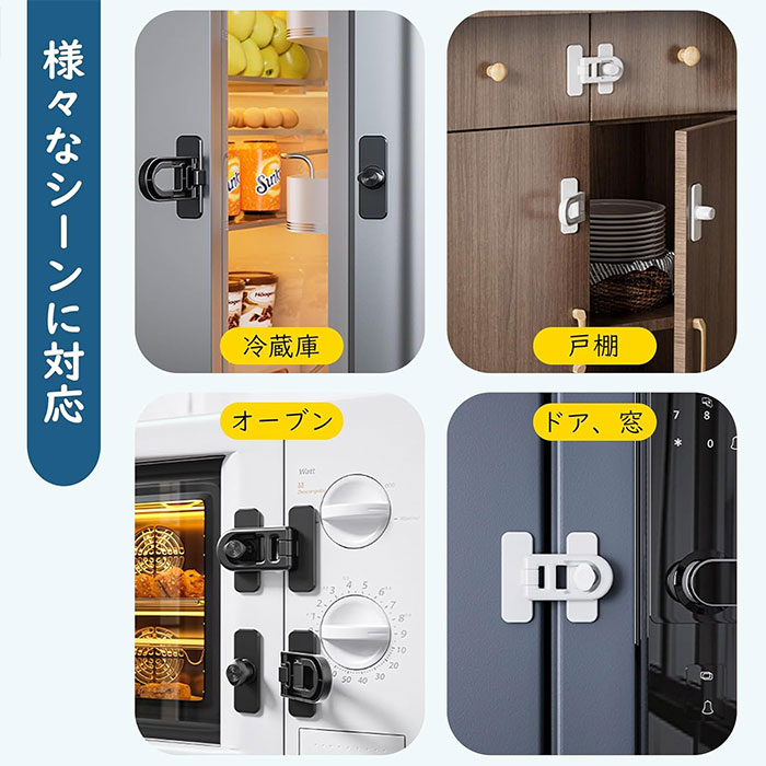 冷蔵庫のドアだけでなく、オーブンや電子レンジ、書類棚、キャビネット、物置などにもこのドアロックを設置できます。万が一商品不具合のようでしたら、ご購入後3か月以内に通常使用における故障により使用できなくなった場合、無償交換または返kinをさせていただきます。ご心配なさらないでくださいませ。