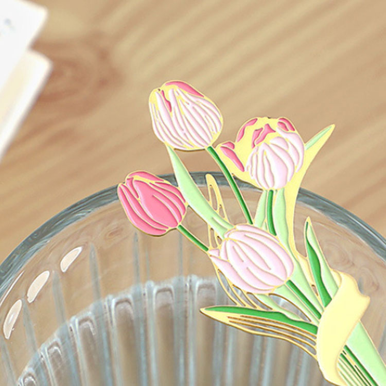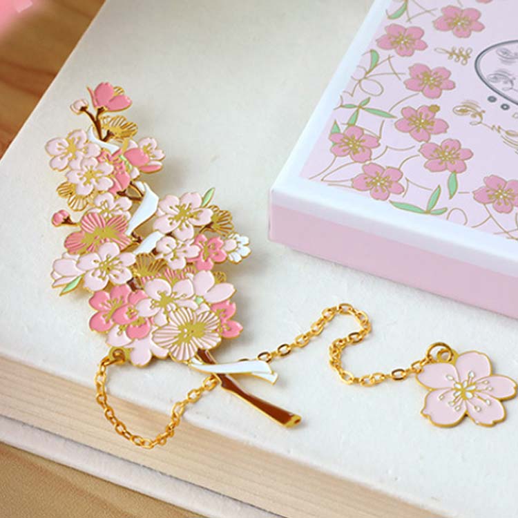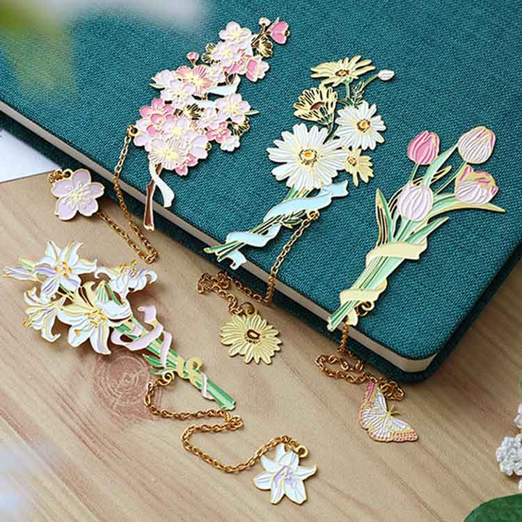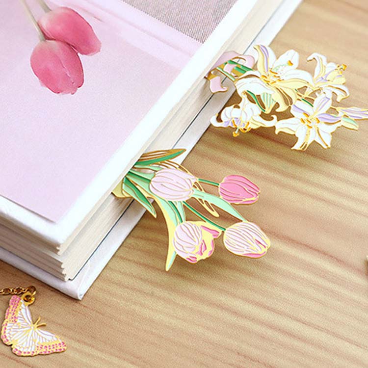 ブックマーク お花 ブックマーカー しおり 女の子 チューリップ 白百合 雛菊 桜 おしゃれ かわいい プレゼント BOX付き ギフト 金属 ボタニカル ゴールド 金縁 読書 チェーン ゆらゆ メタル