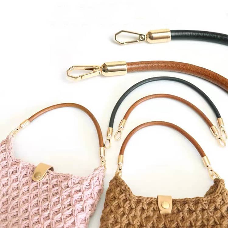 トートバッグやポーチ、手提げバッグにぴったりのナスカン付き本革レザー持ち手です。