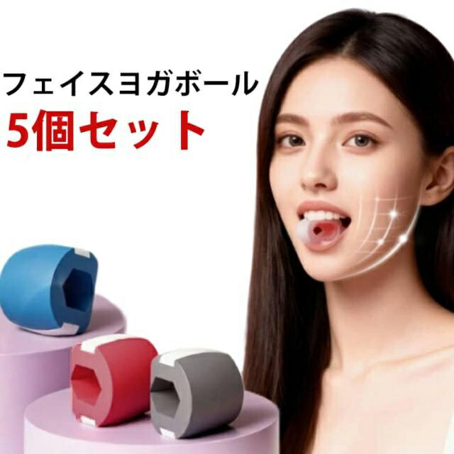 顔痩せ 表情筋トレーニング エクササイザー フェイス ほうれい線 シリコン 器具 あご フェイスライン 顎 5個セット グッズ 鍛える リフトアップ 小顔 美顔器 解消 男女兼用 対策 二重 引き上げ