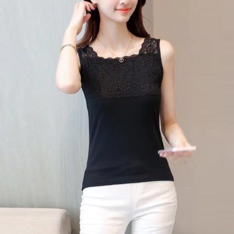 胸元と肩に繊細なレースを施した、大人見えする上品なデザイン。チラ見せでもコーディネートを華やかに