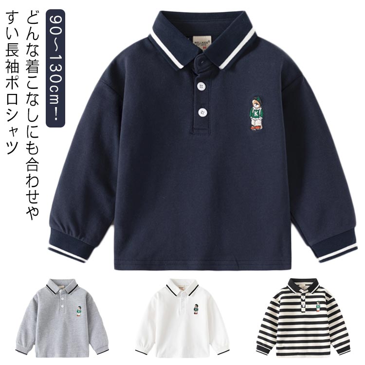 ポロシャツ 長袖 キッズ 子供服 子ど キッズ トップス ポロシャツ 豊富な品揃え グレー ホワイト ネイビー ストライプ柄 90 100 110 120 130